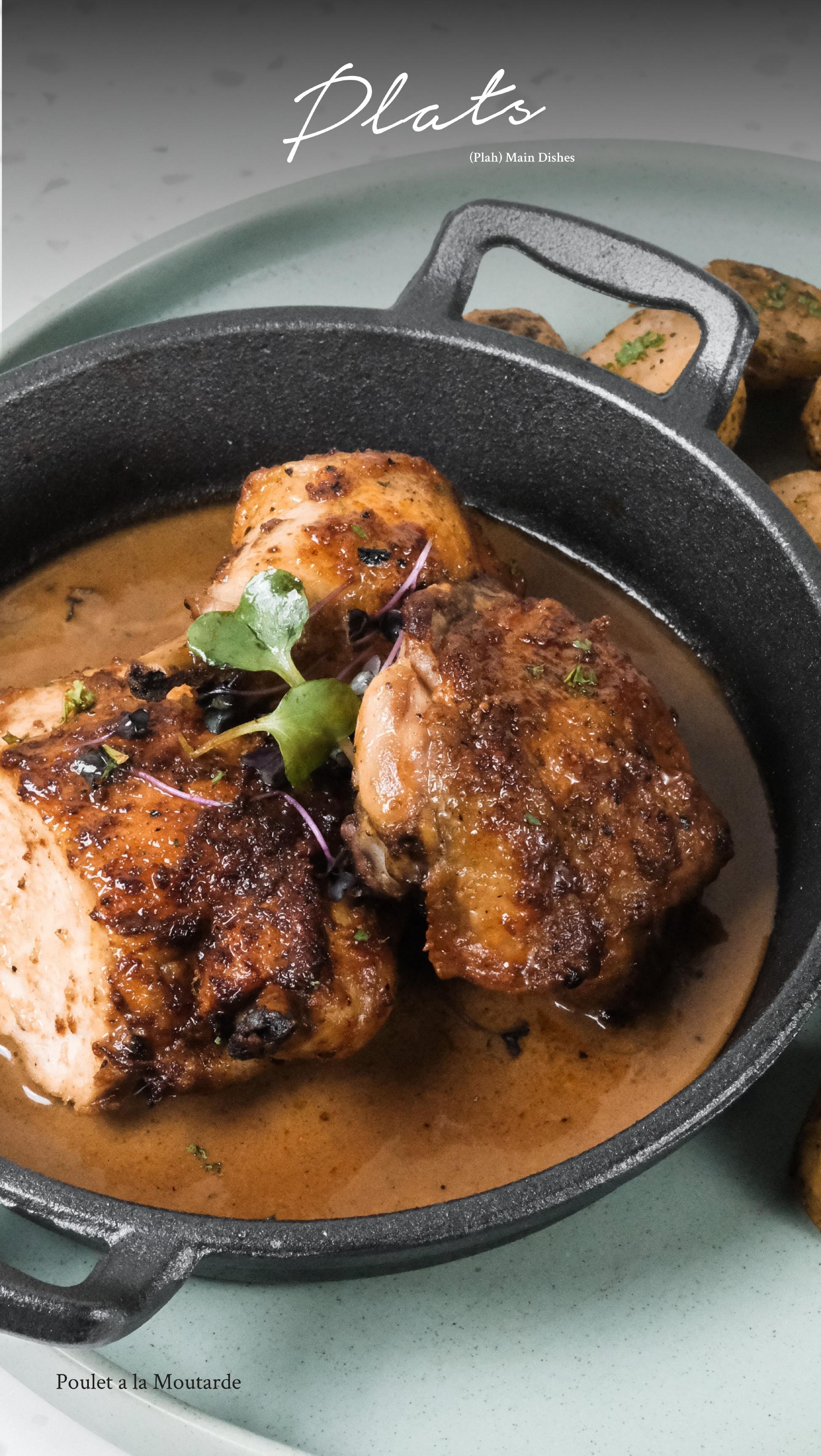 Herb Crusted Local Seabass | PHP 900 180 grams seabass, tinola sauce, baby potatoes, mushrooms à la grecque