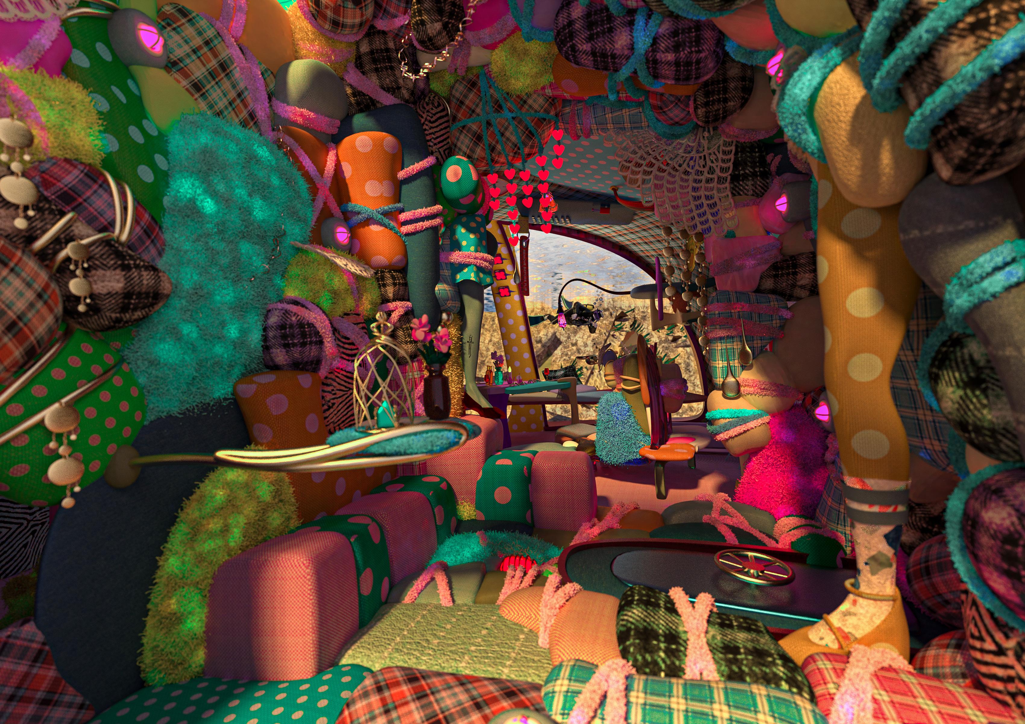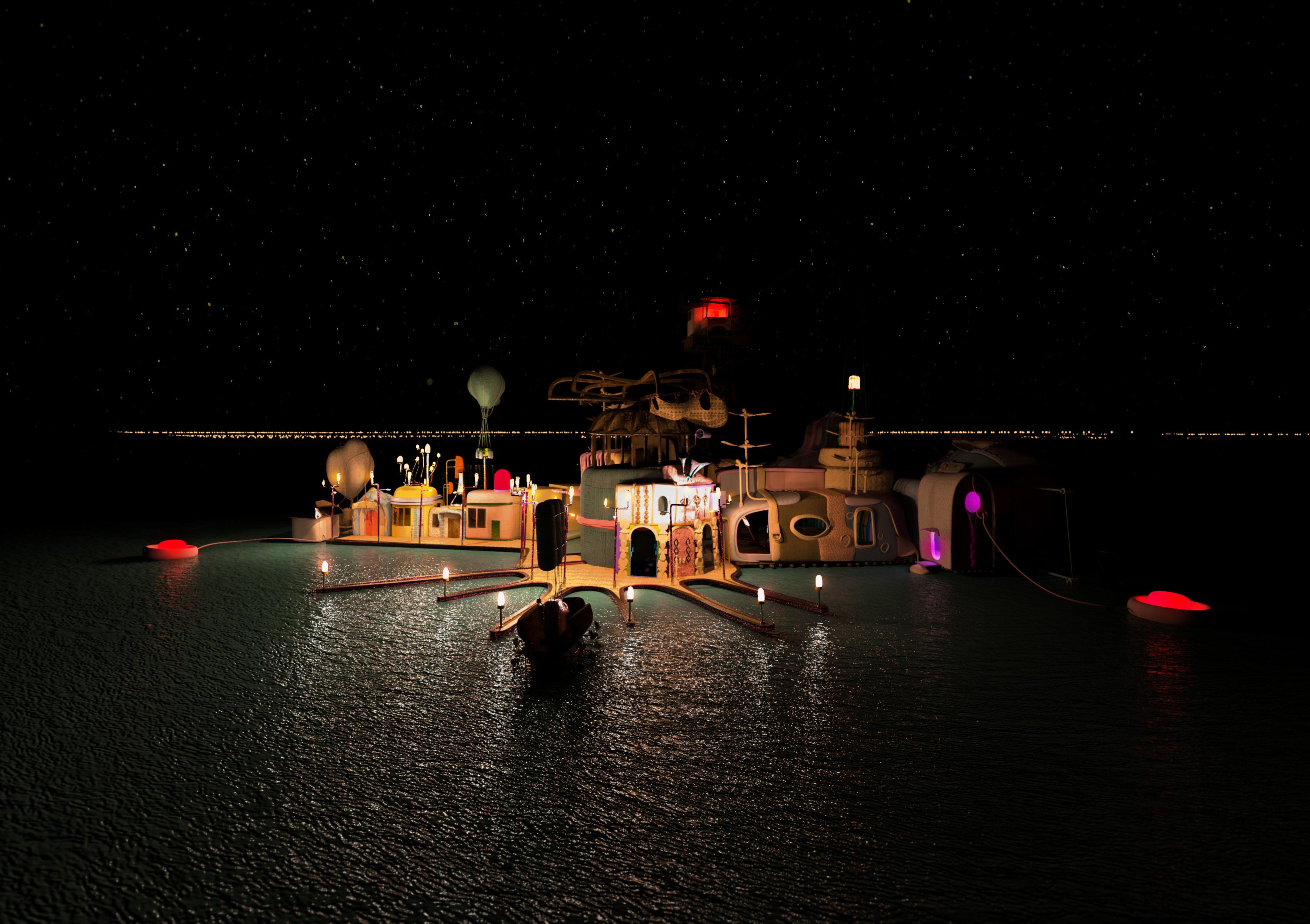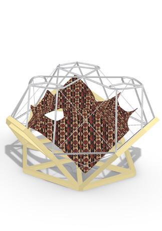 The sleeping spaces in this design have been constructed from mud bricks and are achieving thermal mass to keep occupants warm in the cold and cool in the heat. The overall look is inspired by the traditional Bedouin rugs, with open spaces and draped fabrics, while the geometry has been achieved by replicating minimal surfaces that have been reinforced with mud and bio concrete.