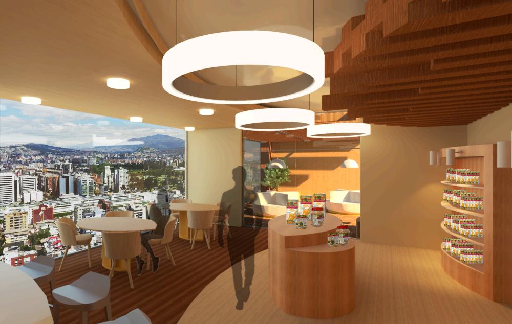 SOFTWARE: REVIT, LUMION, PHOTOSHOP CONCEPT CAPTURE THE BRAND IDENTITY USING THE BRAND'S COLOR SCHEME AND ONE OF ITS PRODUCTS (ALMONDS), DECONSTRUCTING IT IN BOTH FORM AND FUNCTION AND USING IT FOR THE INTERIOR DESIGN. THIS IS REFLECTED IN THE ARCHITECTURAL LAYOUT AND ALSO IN THE TEXTURES AND FINISHES OF THE FURNITURE, WALLS, FLOORS, AND CEILING.