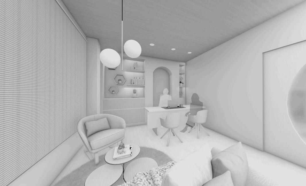 CONCEPT ADAPTATION OF A SPACE THAT INCLUDED THREE CUBICLES, A STERILIZATION ROOM, AND A RECEPTION AREA USING BRIGHT LIGHTING AND A COLOR SCHEME REPRESENTATIVE OF THE BRAND