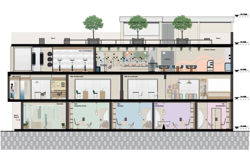 SOFTWARE SKETCHUP, LUMION, PHOTOSHOP CONCEPT: REMODELING AN OLD BUILDING FOCUSED ON CREATING A CALM, EDUCATIONAL, AESTHETIC, AND FUNCTIONAL ENVIRONMENT TO MEET THE NEEDS OF THE USER (WOMEN AND CHILDREN) WHO FIND A PLACE OF REFUGE AND DEVELOPMENT ALL THIS THROUGH HEALTH, EDUCAT ONAL, INTERACTIVE, AND RECREATIONAL SPACES.