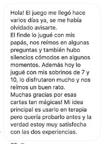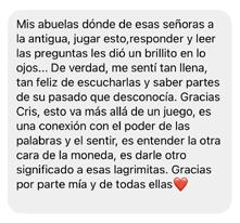 La edición para Historias de Amor tiene preguntas más directas, íntimas, personales y reveladoras. Podés seleccionar las cartas y usarlo con amistades, familiares y equipos de trabajo. Te aseguro que entre menos personas y mayor relación haya entre ellas más profunda puede ser la conversación y así la conexión.