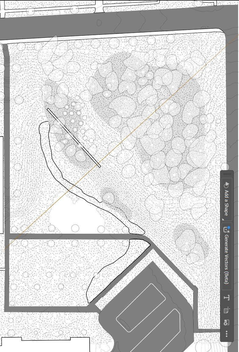 For this project, I focused on the ground. But what does “ground” truly mean? I explored various interpretations and chose to work with the concept of ground as the act of reducing something to small pieces or powder through a grinding process. To reveal the idea of reducing to small pieces and to weaken something, the first operation consists of removing the existing infrastructure found in the site to relocate it, that means removing the asphalt found in the parking lot area, breaking the concrete sidewalks in blocks and removing the gabion retaining wall.