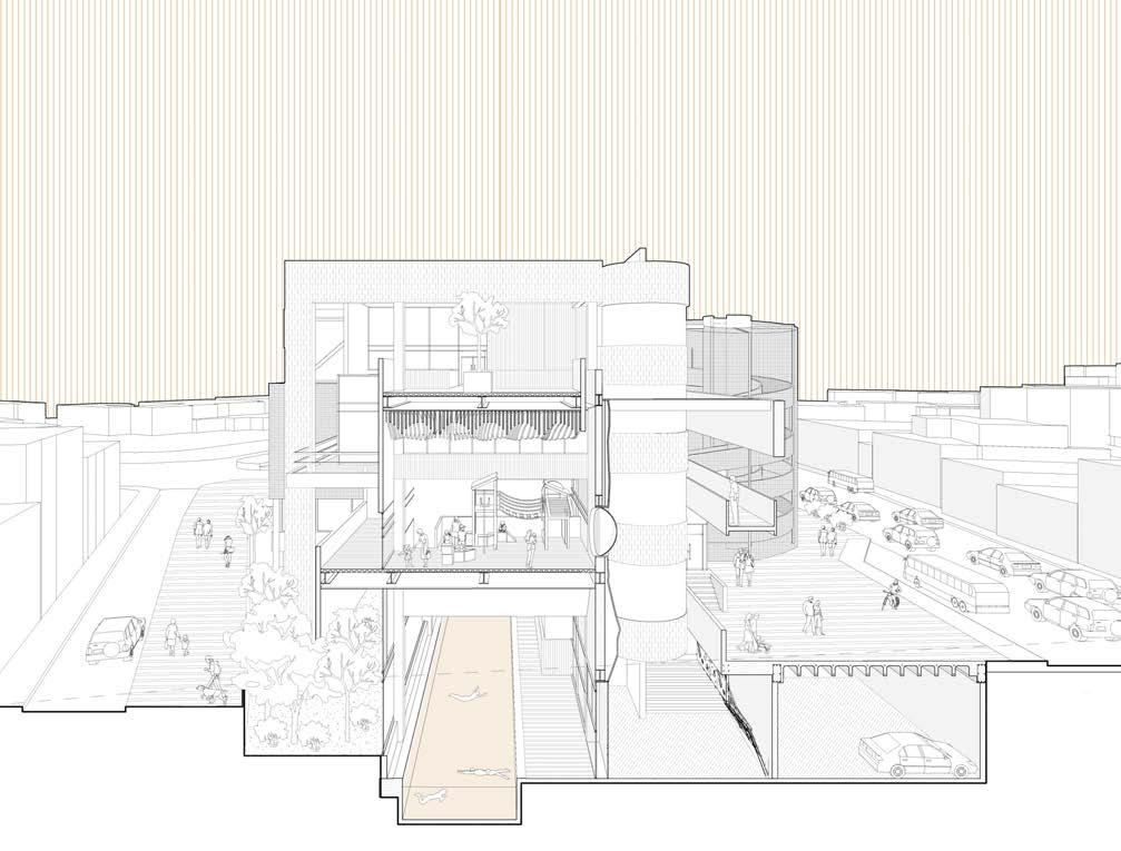 This project aims to reconnect the neighborhoods through a space dedicated to recreation and leisure. Site plan