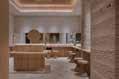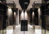 La piscina representa la extensión natural de la zona de bienestar. Se extiende al aire libre y cuenta con zonas chill-out que ofrecen diferentes experiencias sensoriales. Seis "cajas de islas" situadas al borde de la piscina.Se utilizaron fuentes de luz específicas para proporcionar iluminación, incluidas luces ambientales inspiradas en un único motivo: las luminarias se presentan en diferentes versiones: pueden ser lámparas escénicas o un hilo de bombillas que recuerda las luces de un camerino de teatro.