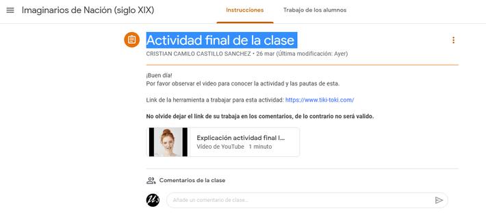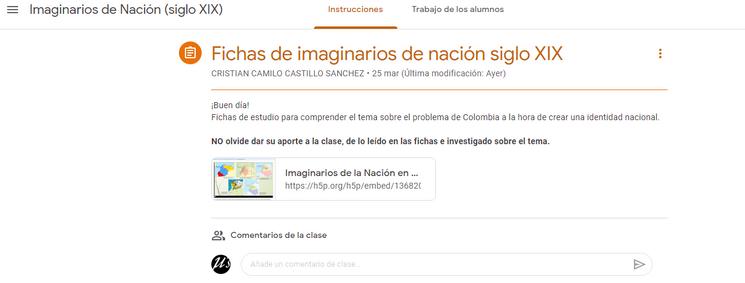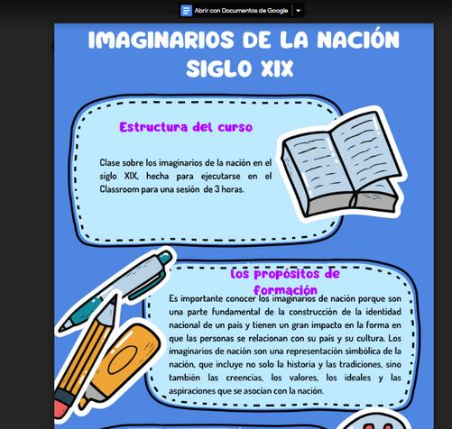 Aula virtual (classroom) Imaginarios del nación (siglo XIX)