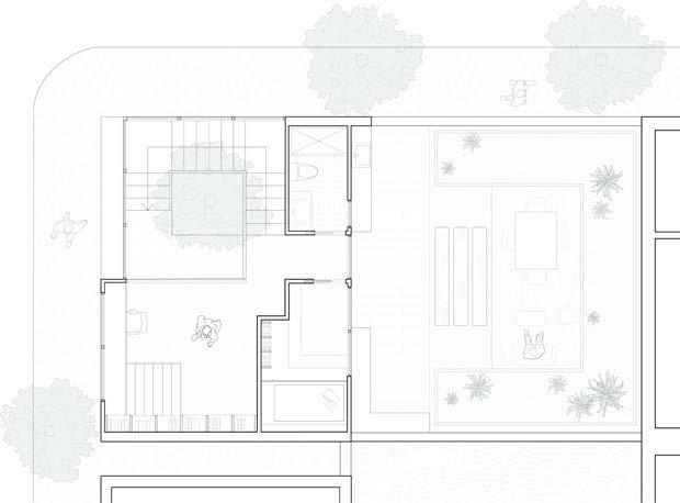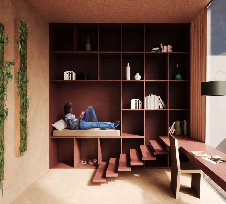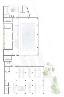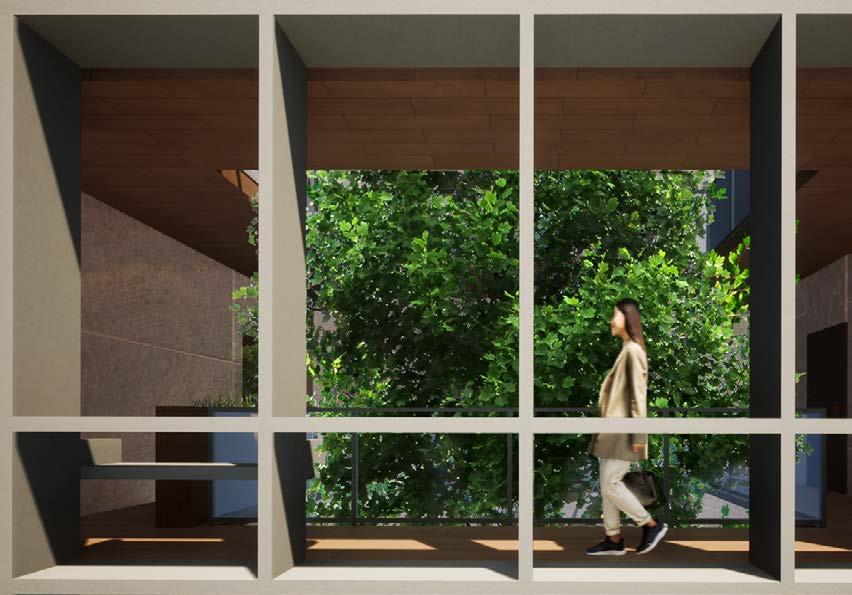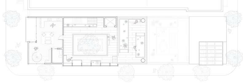 A space for everyone; The apartment complex consists of a public space that allows for community and nature to coexist, living under a single space. The central courtyard culminates in a community garden within the thrid floor of the apartment complex .