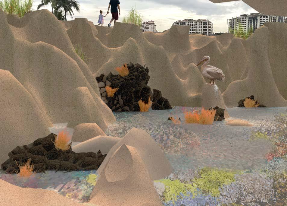 Time was a driving force in the design of the artificial reef. We design based on the factor of time, how would the site evolve over time? The erosions act according to the conditions that surround them. How would sealevel rise change the way this New South Pointe Park evolves.