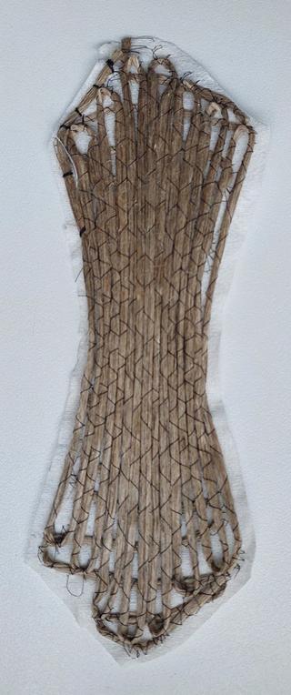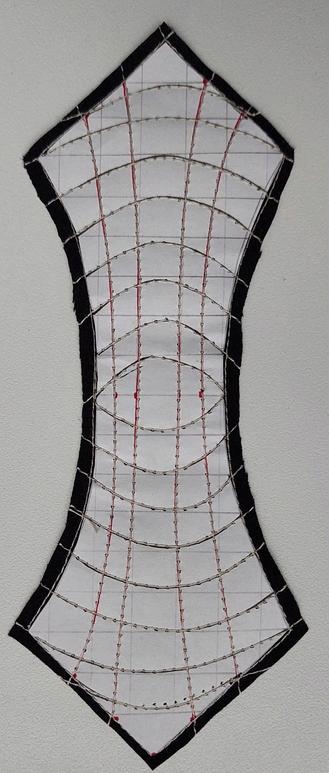 A pivotal aspect in this phase was the intentional redefinition of the purpose inherent in the selected patterns derived from the reference book While the original intent of these patterns was to facilitate folds, we strategically repurposed these lines as reinforcement for our end product Each line in our case means that our fibre will be sewed there as reinforcement of the end material Central to our approach is the exploitation of the inherent spaces created by the fibres, leveraging them as optimal zones for controlled folding and bending (bending zones) This deliberate shift in purpose underscores our commitment to adapt existing methodologies to suit the specific requirements of our envisioned designs, fostering innovation and precision in our exploration of tailored fibre applications.