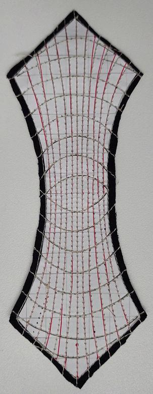 Before conducting tests with the TFP machine, we sought to explore the behaviour of the designs using a sewing machine. Utilising a standard yarn, we carefully sewed these designs onto a denim fabric This experimental phase allowed us to observe and evaluate how the designs interacted with the fabric and how well they maintained their structural integrity during the sewing process.