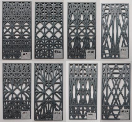 Having curated a comprehensive selection of patterns, our attention narrowed to three specific designs. These were subjected to experimental testing to assess their performance in terms of bending and their visual impact on the modular components.