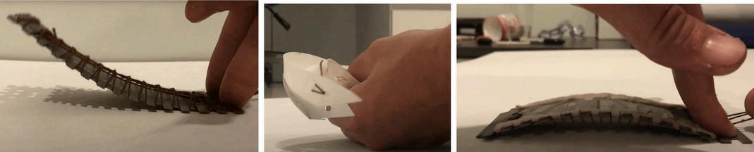 The intention behind the 3D print choice was to create a test medium that emulated the rigidity anticipated in the final TFP material. This approach allowed us to systematically assess and quantify the bendability of the fabricated patterns under conditions that simulate the stiffness of the intended TFP product The use of 3D printing in this context aimed to provide valuable insights into the patterns' performance as stiff materials, informing the refinement of our designs for optimal outcomes in subsequent phases of the project.