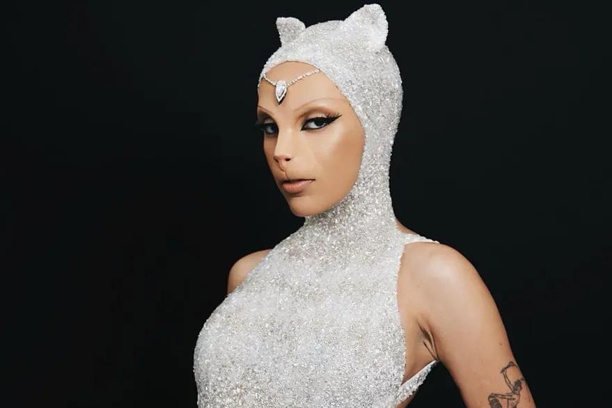 Prematuramente en la gala, cuando no se había confirmado la asistencia del mismísimo Choupette, quien terminó heredando una fortuna tras la muerte de su dueño, Doja Cat llegó a la alfombra roja de la MET Gala con un traje que se asemejaba a un felino De esta manera la famosa cantante estadounidense lució un traje de Óscar de la Renta hecho con 150 mil canutillos plateados y que implicó unas 5000 horas de trabajo.Pero lo que más llamó la atención de su look fue el gran trabajo que realizó su equipo de maquillaje, puesto que llevó una prótesis bucal la cual emulaba a el rostro del animal