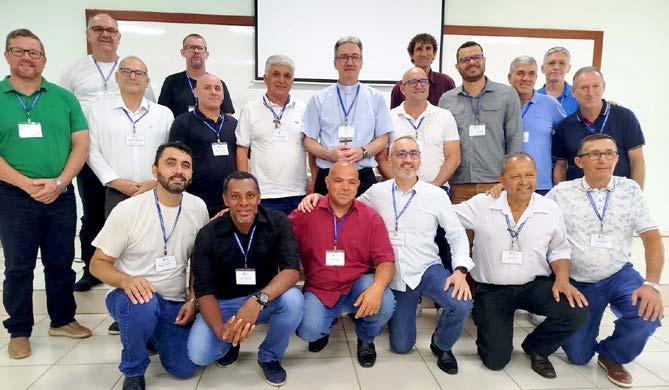 Candidatos ao diaconato permanente com D. Juarez Destro (bispo auxiliar de Porto Alegre), que assessorou encontro de formação permanente dos leigos com o tema “Ministerialidade da Igreja”.