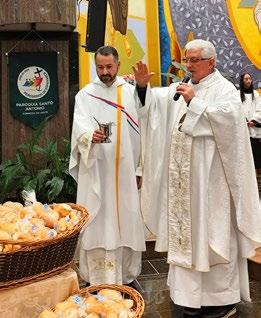 Pe. Solano Tambosi, da Paróquia Nossa Senhora da Glória (Quatro Pontes) conduz o rito de bênção dos pães de Santo Antônio em Formosa do Oeste