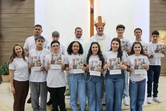 O bispo diocesano, D. João Carlos Seneme, presidiu a celebração eucarística com o Sacramento da Crisma para um grupo de crismandos da Paróquia Nossa Senhora Aparecida (Terra Roxa). Que o Espírito Santo suscite em seus corações o desejo de servir e sejam estimulados pela própria comunidade de fé