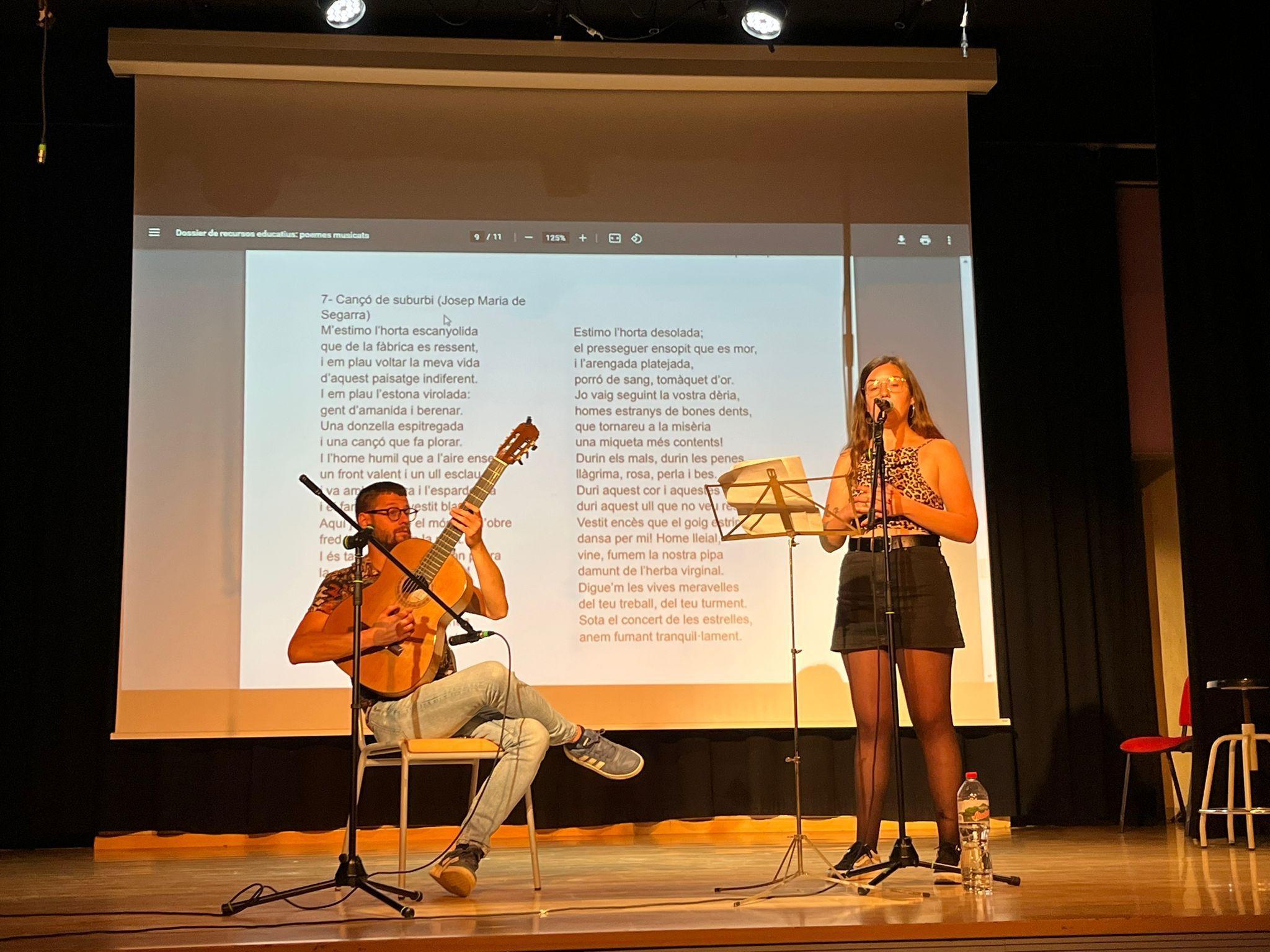 El proppassat divendres 5 de mai , a l’institut Barri Besòs, l’alumnat de 1r de batxillerat vam audir de l’actuació de la parellademúsics(idocents)PaulaLlopisiDavidSal ado.