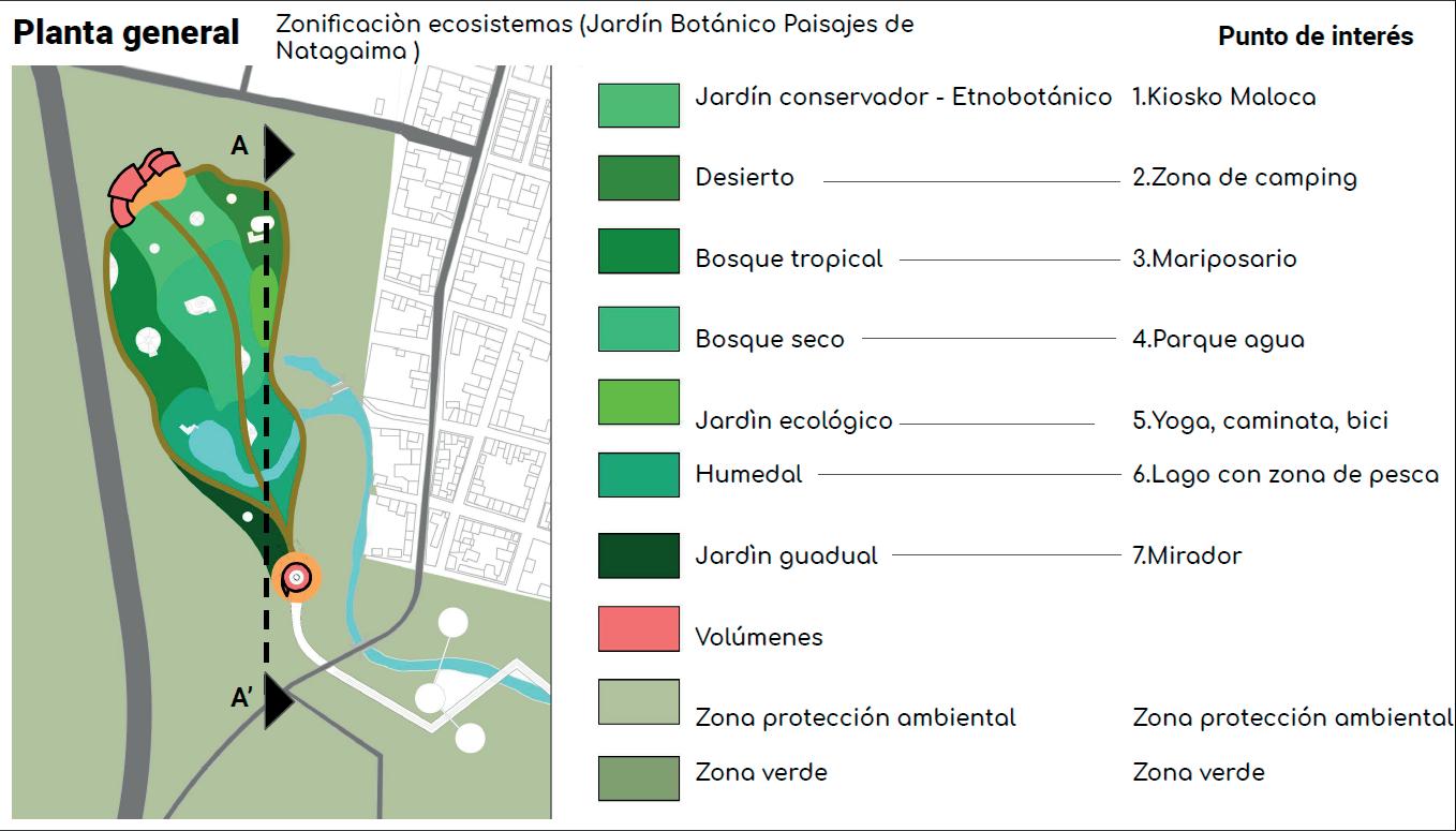 Con este análisis, se llegó a la conclusión de la creación de un jardín botánico vinculado tal vez a la universidad del Tolima, donde su principal objetivo sería el estudio, conservación y aprovechamiento del ecosistema del bosque seco, mediante el PROMENADE PAISAJÍSTICO, por eso el equipamiento adquiere el nombre de “Paisajes de Natagaima”.