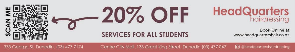ISSUE 06 03 APRIL 2023 EDITOR Fox Meyer SUB-EDITOR Nina Brown NEWS EDITOR Nina Brown FEATURES EDITOR Elliot Weir CULTURE EDITOR Annabelle Parata Vaughan KAITUHI MĀORI Skyla, Ngāti Hine STAFF WRITERS Lotto Ramsay, Jamiema Lorimer, Zak Rudin,