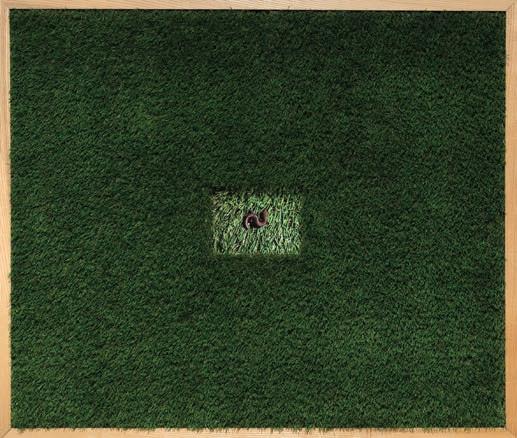 Artificial grass, photograph, timber frame