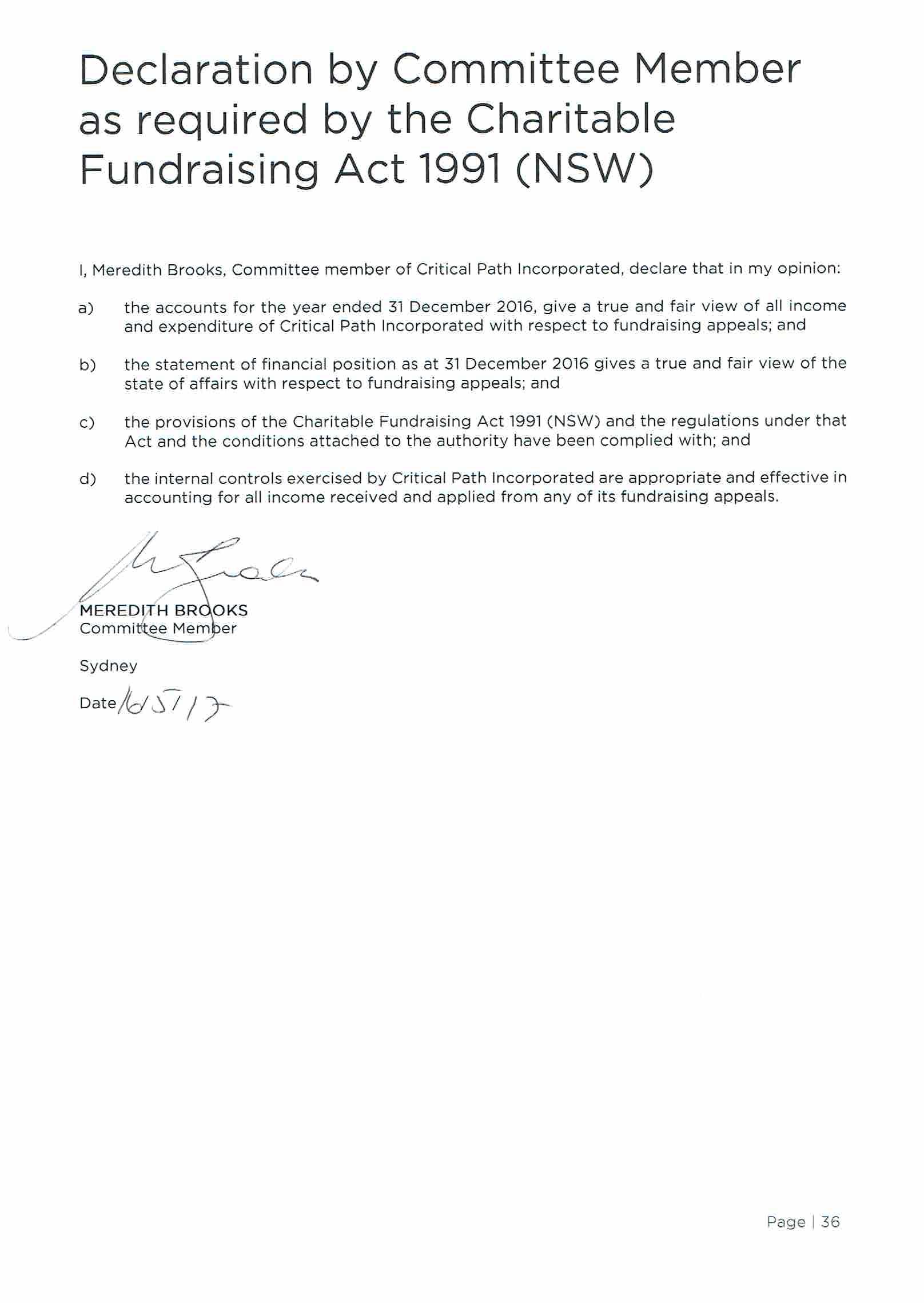 The association holds an authority to fundraise under the Charitable Fundraising Act, 1991 (NSW) and conducts fundraising appeals throughout the year. Additional information and declarations required to be furnished under the Act are as follows: