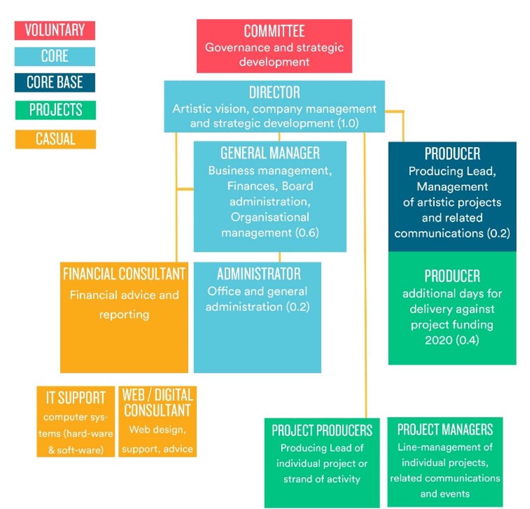 Amber Popelaars left the organisation in February having been head-hunted to another arts organisation. Andrew BattRawden took up this role on 7 January 2020 and left end April 2020. Laura Osweiler returned as part-time General Manager – Finance (1.5 days per week) and continued until the end of the year.