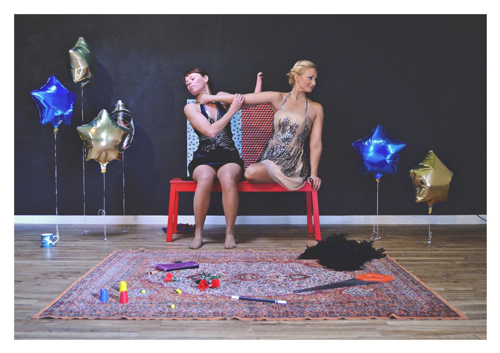I am more bold with the body that I project in the film. There is a body honesty that seems more illusive in live performance. I can show my stump, my non-hand, my left arm (none of these terms are satisfactory, because my hand is my hand, so any other name is hard to find, and somehow the term ‘hand’ does not seem sufficient here) to the viewer. I can use the film to share my vulnerability and my strength. For example, I re-watch a moment where I am holding a balloon filled with helium during a rehearsal. The studio had very high ceilings and the manager of the space informed us that if the balloons floated up there, they would never get them down. In this moment the camera had been left on as we recorded the day’s rehearsal. I lost my grip on the ribbon holding the balloon and as it floats away, I saw myself jumping up, laughing in an attempt to retrieve the balloon. I then observe my expression, my eyes and body language indicate a shared moment with O’Brien (she is not visible on the film, but I know that I am directing my disbelief at her and she is reflecting it back to me). This moment is one of my favourites in the film as it speaks clearly to my working and personal relationship with O’Brien. In terms of our collaboration, it also indicates that as artists, we have in that scenario achieved our objective; that this process would not take itself too seriously and that we would strive to maintain a focus on creating a duet that was about the real us and our real bodies.