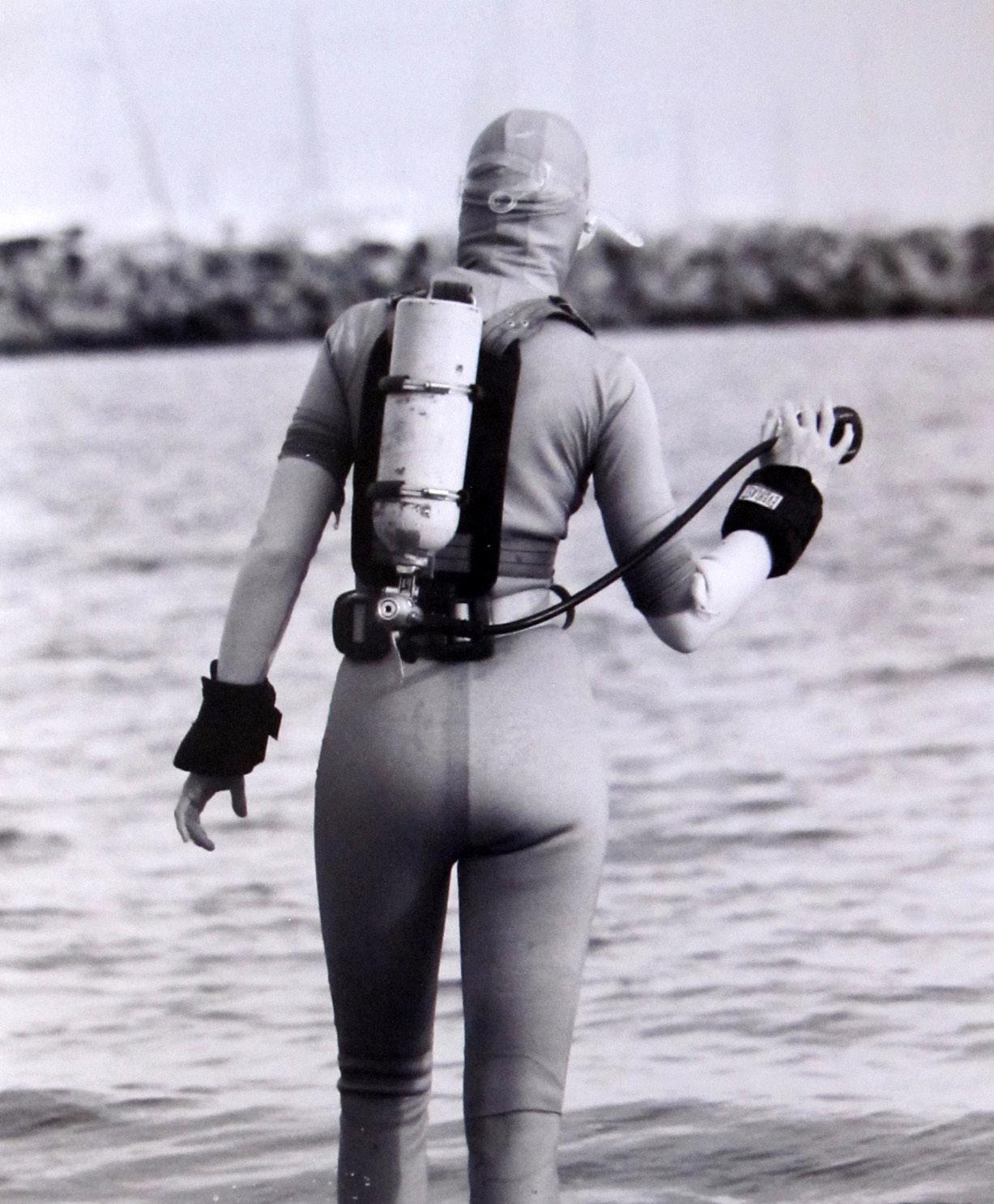 Sarah Jane Pell underwater, dressed in a space-suit during Project Moonwalk Sarah Jane Pell: EVA Lunar Simulation, Project Moonwalk, Comex, Marseille FR. - Photo Credit: Alexis Rosenfeld, 2016