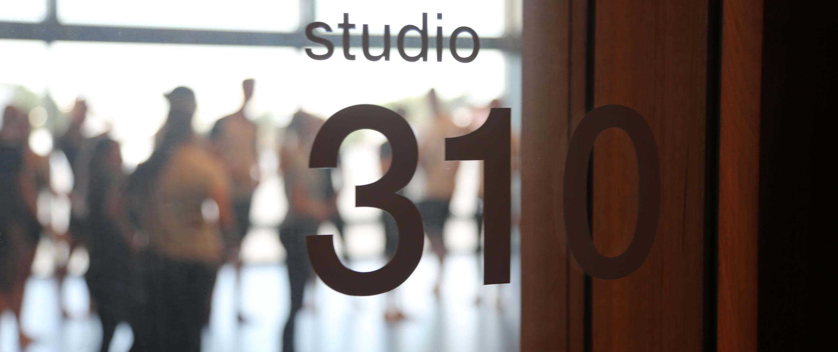 Looking through studio 310 door at filled room - Photo Credit: James Dillon