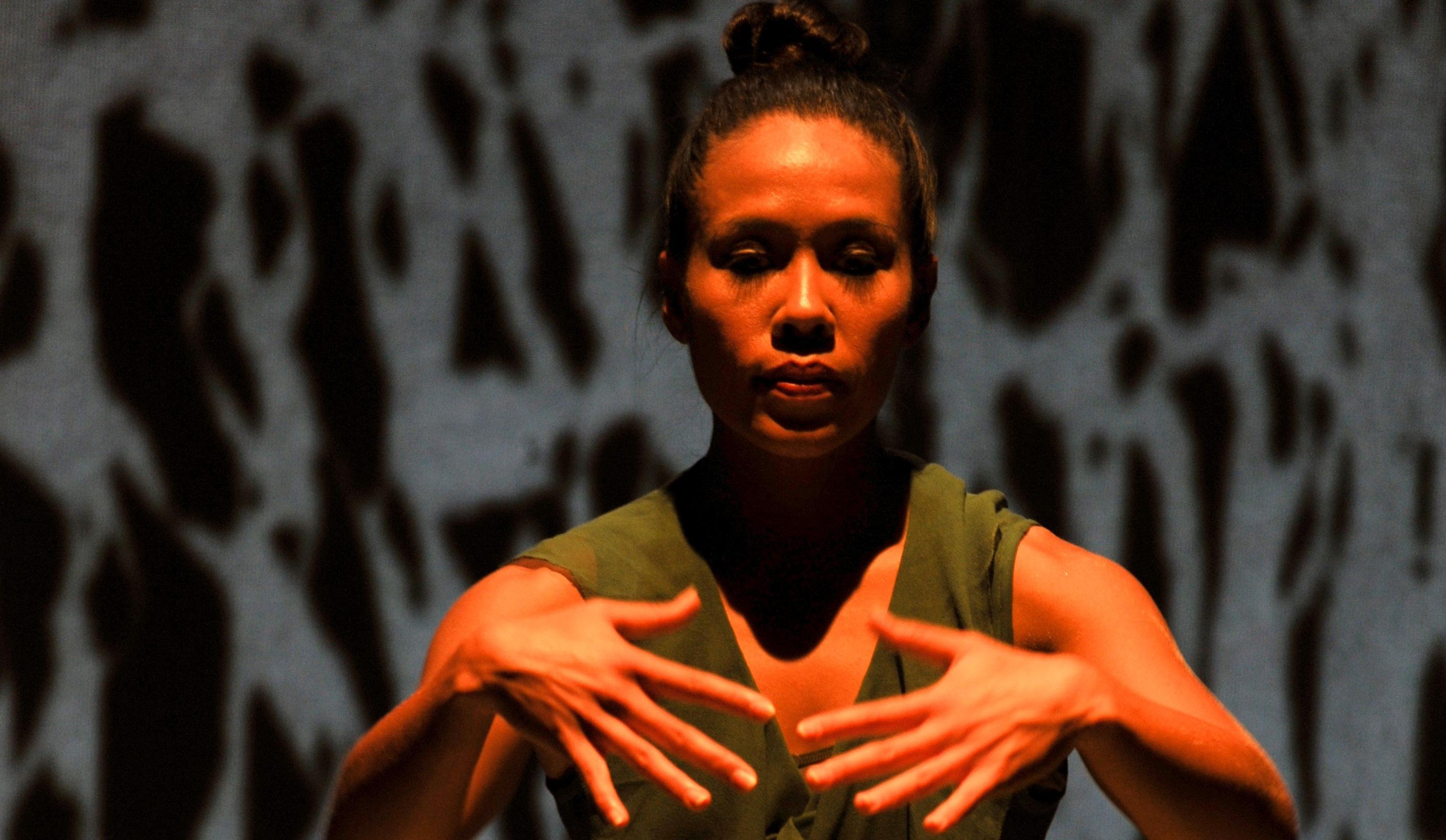 A dancer performs with open hands, her palms faced toward her - Photo Credit: Heidrun Lohr 2013