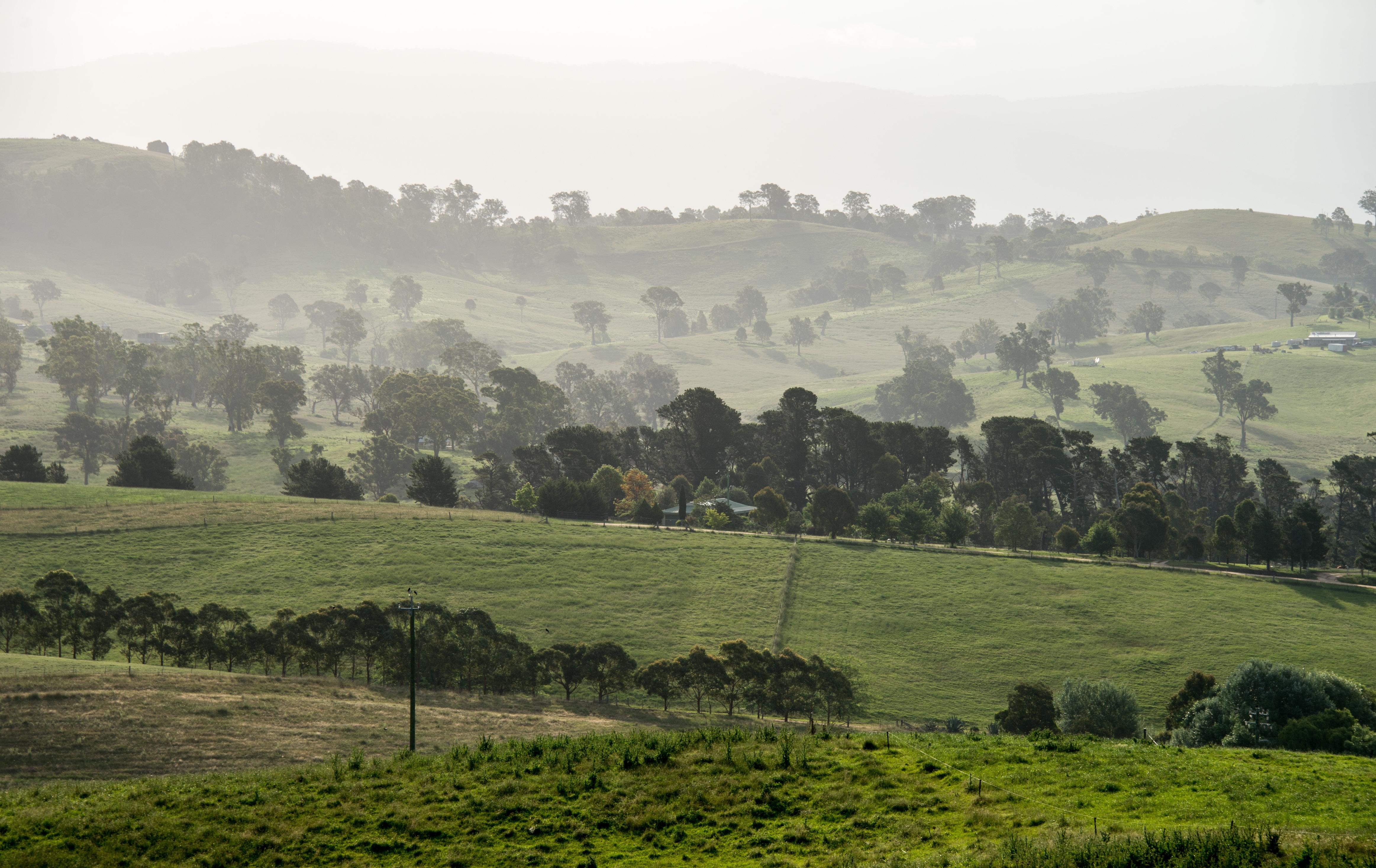 A landscape shot of rolling fields, spotted with trees in the Candelo area - Photo Credit: Joanna Kelly