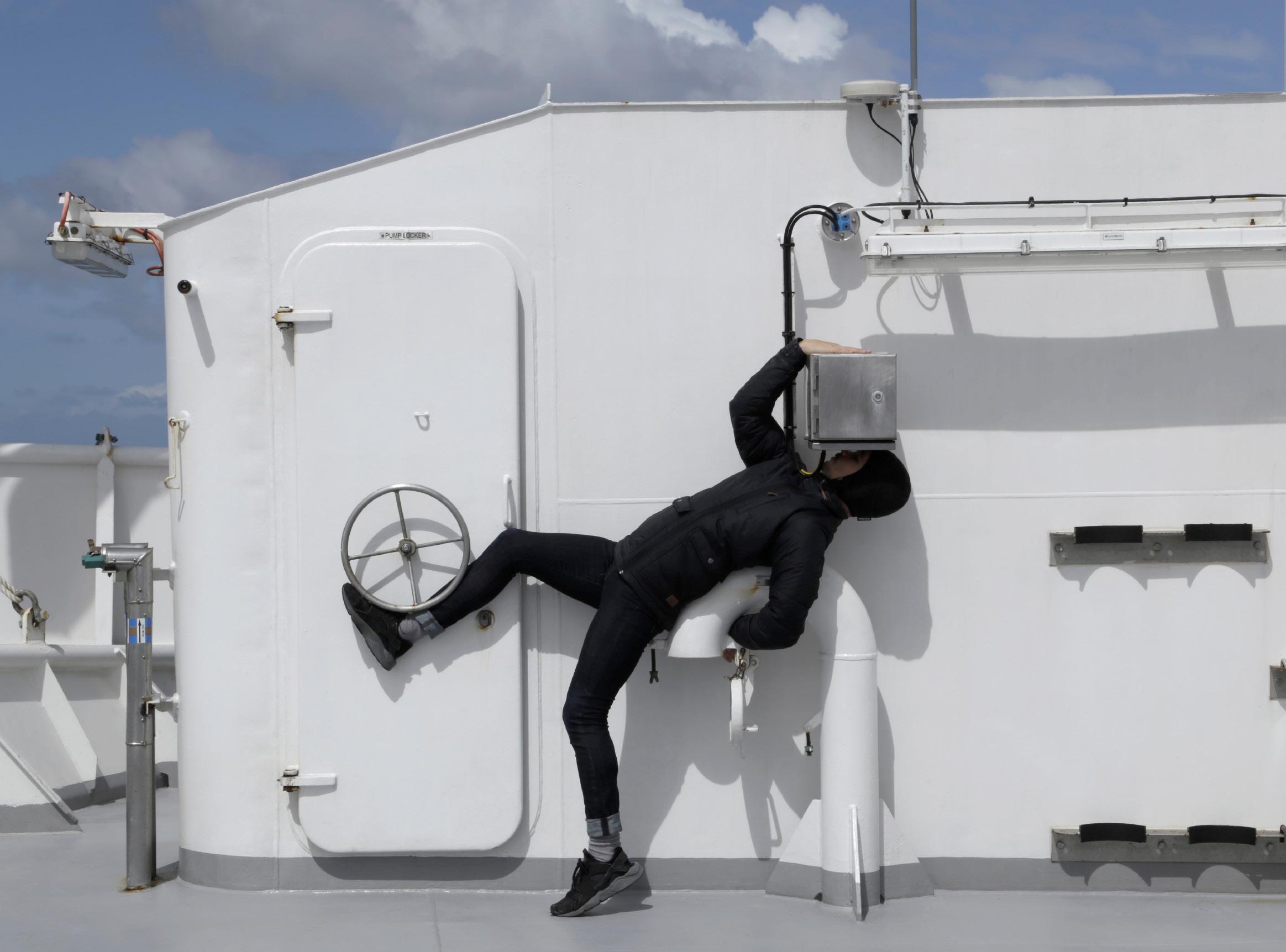 ‘Performing Astronautics 2016-2018’ seeks to firstly address the challenge of translating first-person tactic knowledge embedded in the astronautic body. [4] By literally becoming the Astronaut, I connect or differentiate this knowledge with existing theoretical understandings of space-based embodiment from an Earth-based logic[10] (grounded, pedestrian, linear) and sea-based sensitivity (buoyant, hydrous, flowing) [12]. By then connecting performing arts practice with astronautics, I also externalise how space impacts the human body/mind cadence to alter motion, rhythm, and perception of time/place spatiality in new ways. New strategies for space adaptation, personal expression and degrees of freedom, and interdisciplinary knowledge transfer for future missions may arise too.