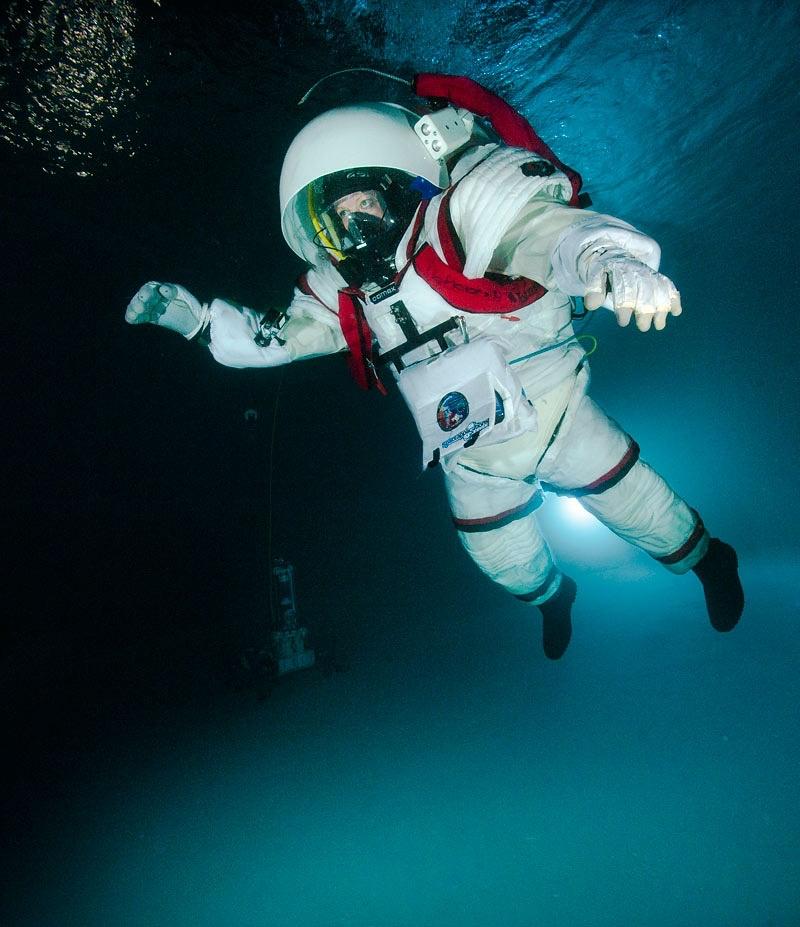 I knew better than to ‘swim’. I walked, climbed and jumped, as an Astronaut in the 1/6th Lunar gravity before multiple cameras and security divers. With limited line of sight, I did not bend but pivoted the waist to twist down without generating torque or overbalancing to deploy payloads, collect and carry items. When all the telemetry failed, and I was ‘standing by’, and there were no media film crews present, I could experiment with Aquabatics.