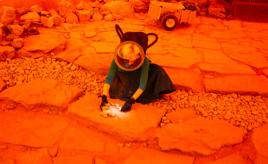 Kneehigh’s early shows in the 80s took place in ‘less conventional places’: ‘We created theatre on cliff tops, in preaching pits and quarries, amongst gunpowder works and arsenic wastes, up trees, down holes, where the river meets the seas and where woodland footpaths end.’