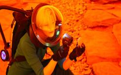 Amulet draws breath through a filtered snorkel plugged into drill holes in an ancient riverbed. An instantaneous rush of pure Oxygen floods her body: a temporary ‘high’, before heavier toxic Carbon Dioxide floods her lungs. As the risk of ingesting indigenous Martian organisms becomes higher, and the cloud of hot rain within the impact crater starts to fall like a sky descending into a sea, she sees the ancient explorer fish come to life before her very eyes. Threatening her existence and the entire mission, she calls on her alter ego for help…