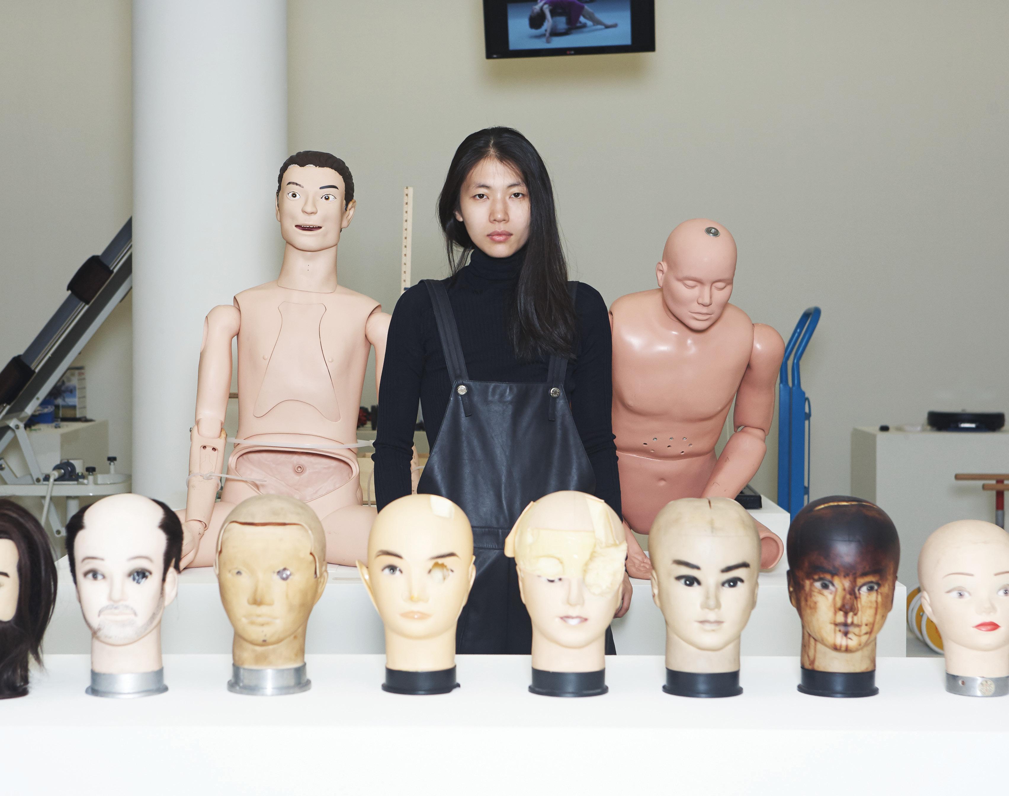 Geumhyung Jeong stands in a room of masks and mannequins | Image by Kiyong Nam