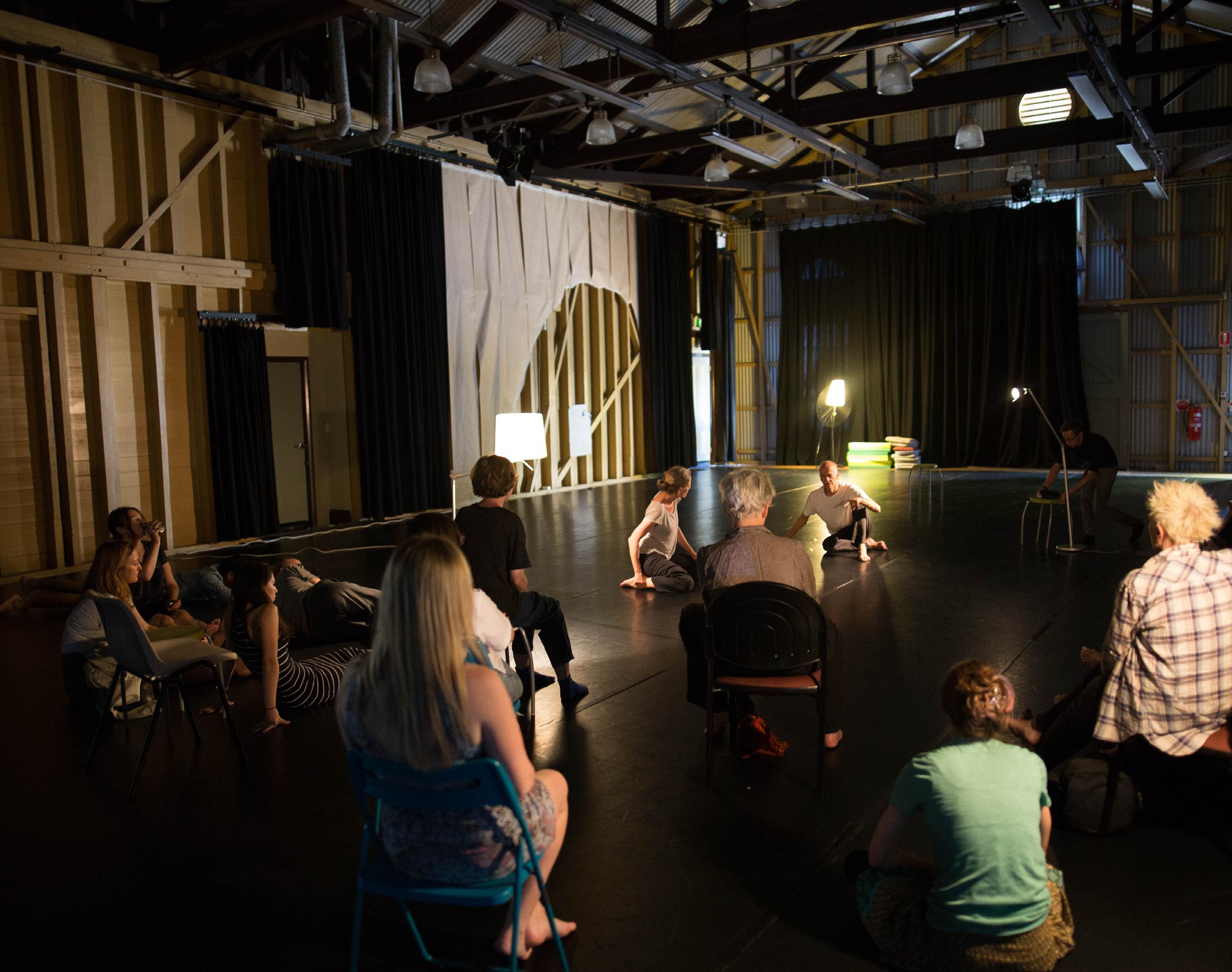 Melbourne choreographer Rosalind Crisp and collaborating artists Andrew Morrish, Peter Fraser and Vic McKewan led a seminar at the Drill Hall at the end of their research week. They explored ideas and methods for developing dance practice in relation to place.