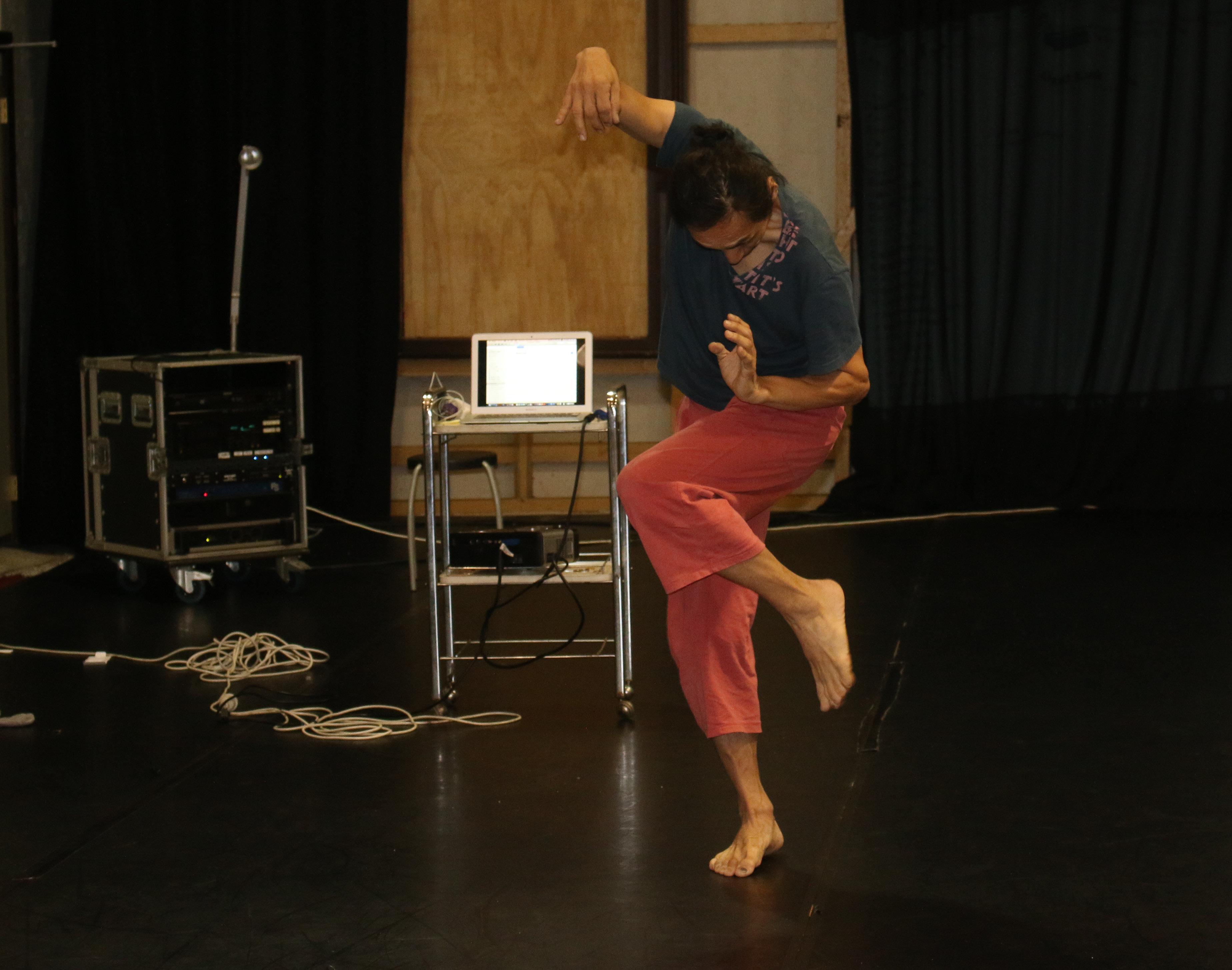 Teita Iwabuchi’s (Japan) 30 minute solo presentation focused on the ‘structure of the human body’ and the ‘interaction of space, music, and human body’. Earlier Teita had led a workshop for 10 artists exploring the connection between physical movement and mental awareness.