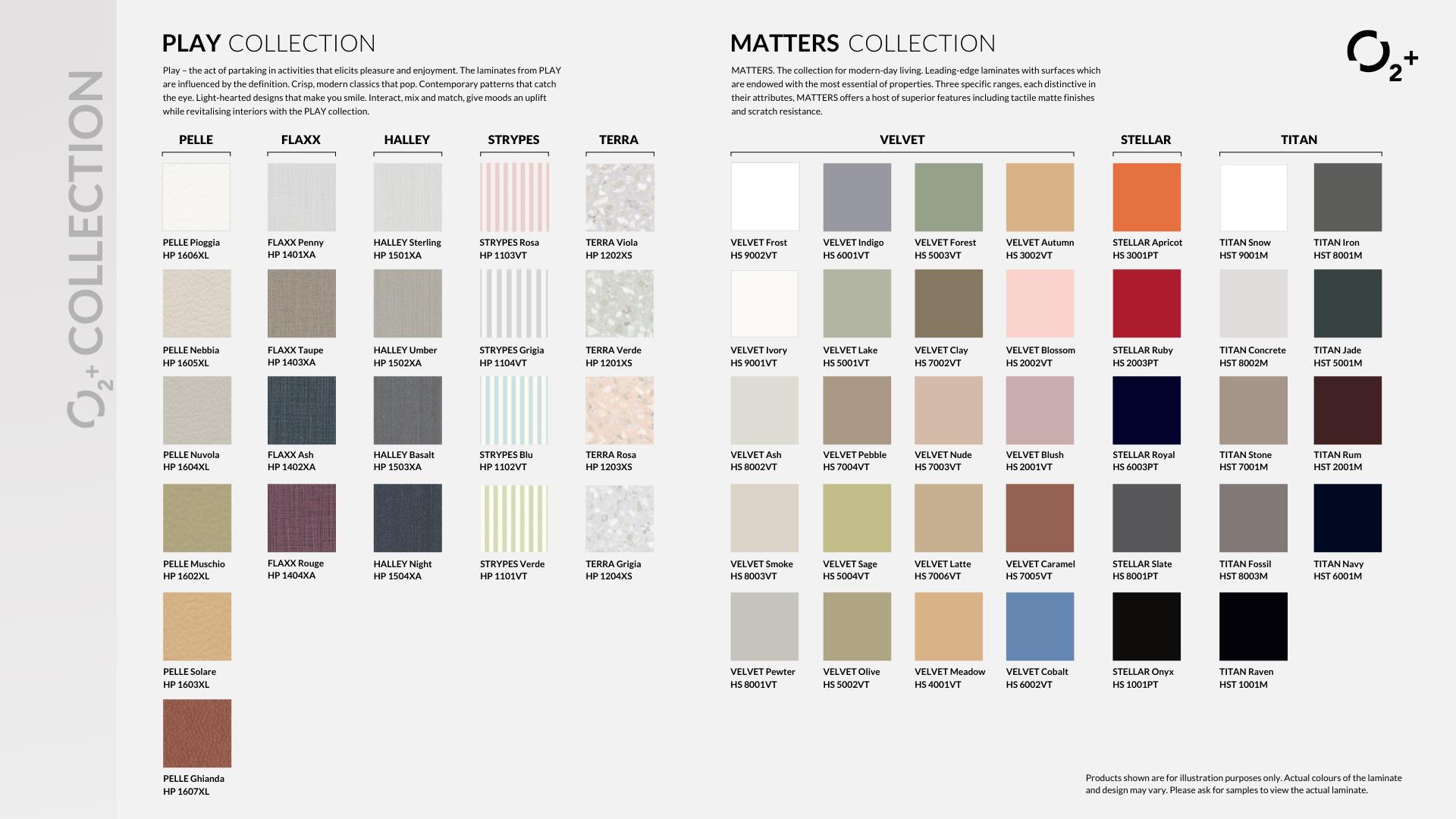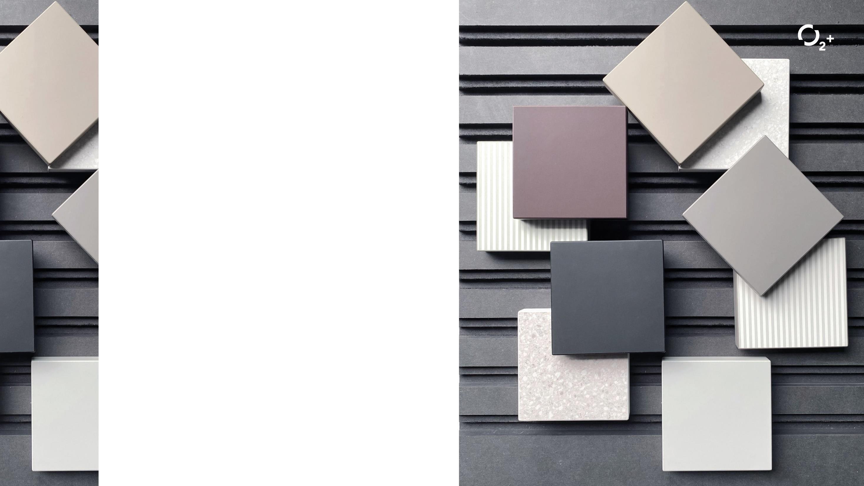 Challenging conventions is the root of originality. With bold, new moves are born fresh, inventive designs with limitless possibilities. O2+ embraces these values to yield versatile, contemporary laminates with superior properties for daring, functional spaces.”