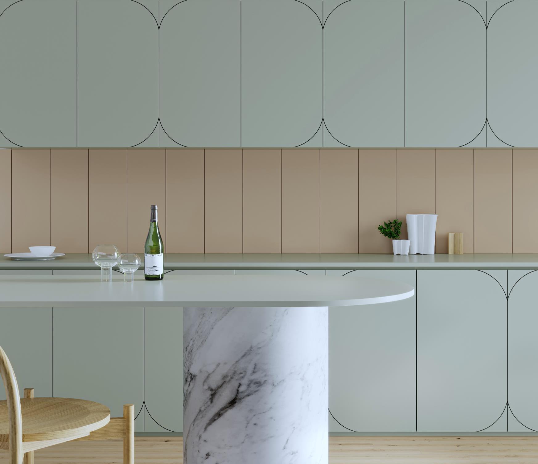 Ideal for verticalsurfaces such as doors,cabinetsand walls, thanks to itsexcellent resistanceto scuffs and light scratches.