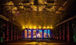 ❶ ❸ Ein sog. SOLARIS-Quader-System in den Abmessungen 4.500 x 4.500 mm, 2.880 mm hoch, bestehend aus 2.356 G-LEC-Kugeln mit einem Durchmesser von 40 mm, befestgt an einem fexiblen Seil, sorgte mitels Medienserver, Content und RGB Balls für ein einzigartges Lichtszenario in verschiedensten Farbverläufen.