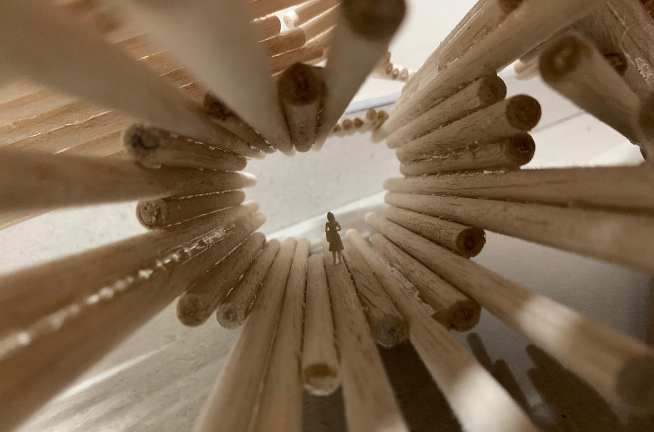 Empleando diferentes típos de madera se crearon caminos curvos que en un punto exacto se conectan entre ellos. Hubo un gran progreso entre maqueta y maqueta que pronto mostrará el resultado final.
