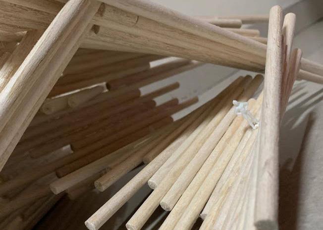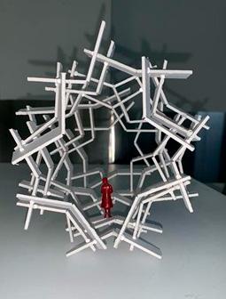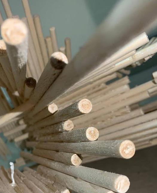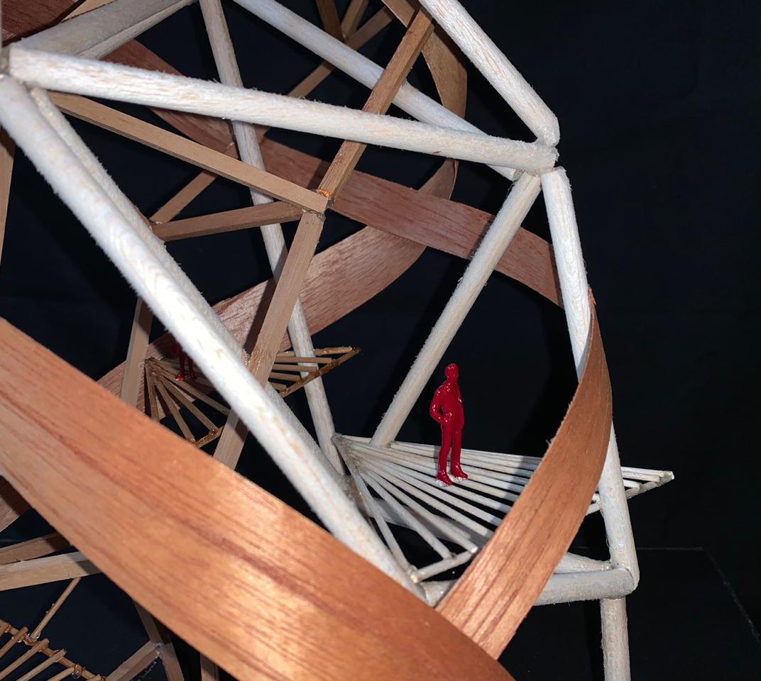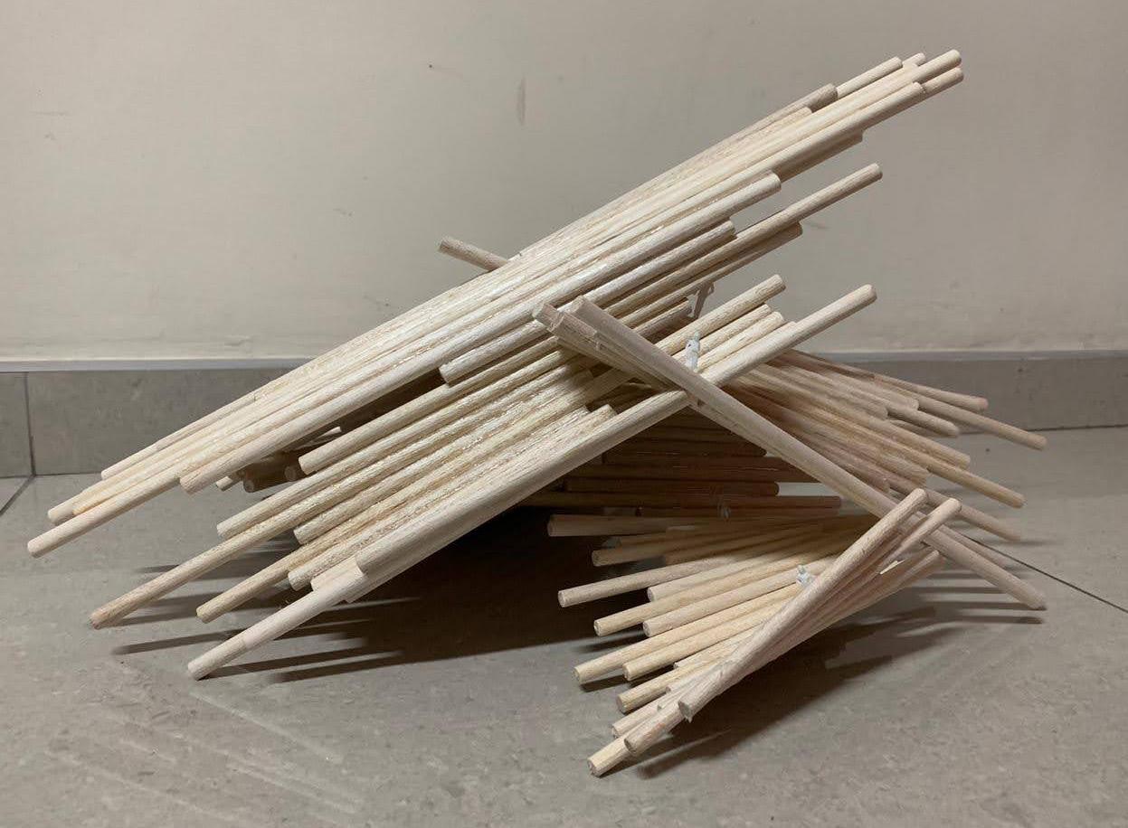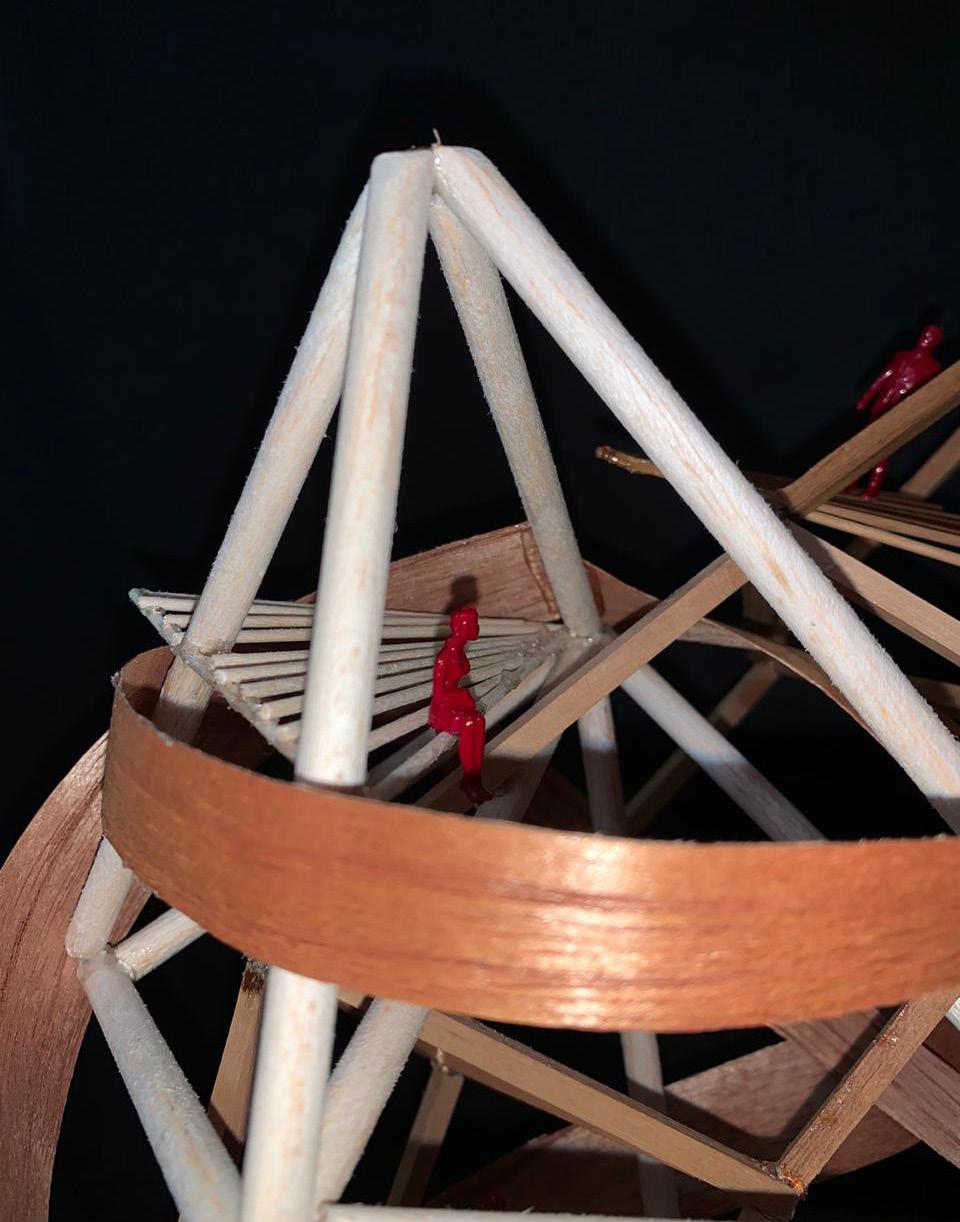 En esta última entrega se puede observar una mejor relación entre las varillas de madera que se cruzan, creandose espacios abiertos, semi abiertos y cerrados en sus intersecciones.