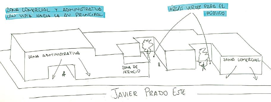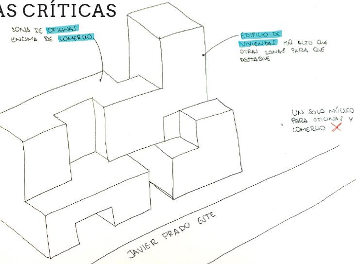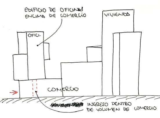 Las primeras propuestas de volumetría resultaron ser muy horizontal y de pocos niveles, donde no se tuvo en cuenta el previo análisis de alturas de la zona.