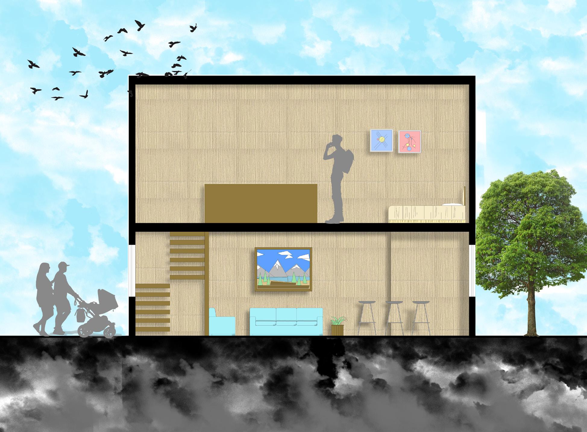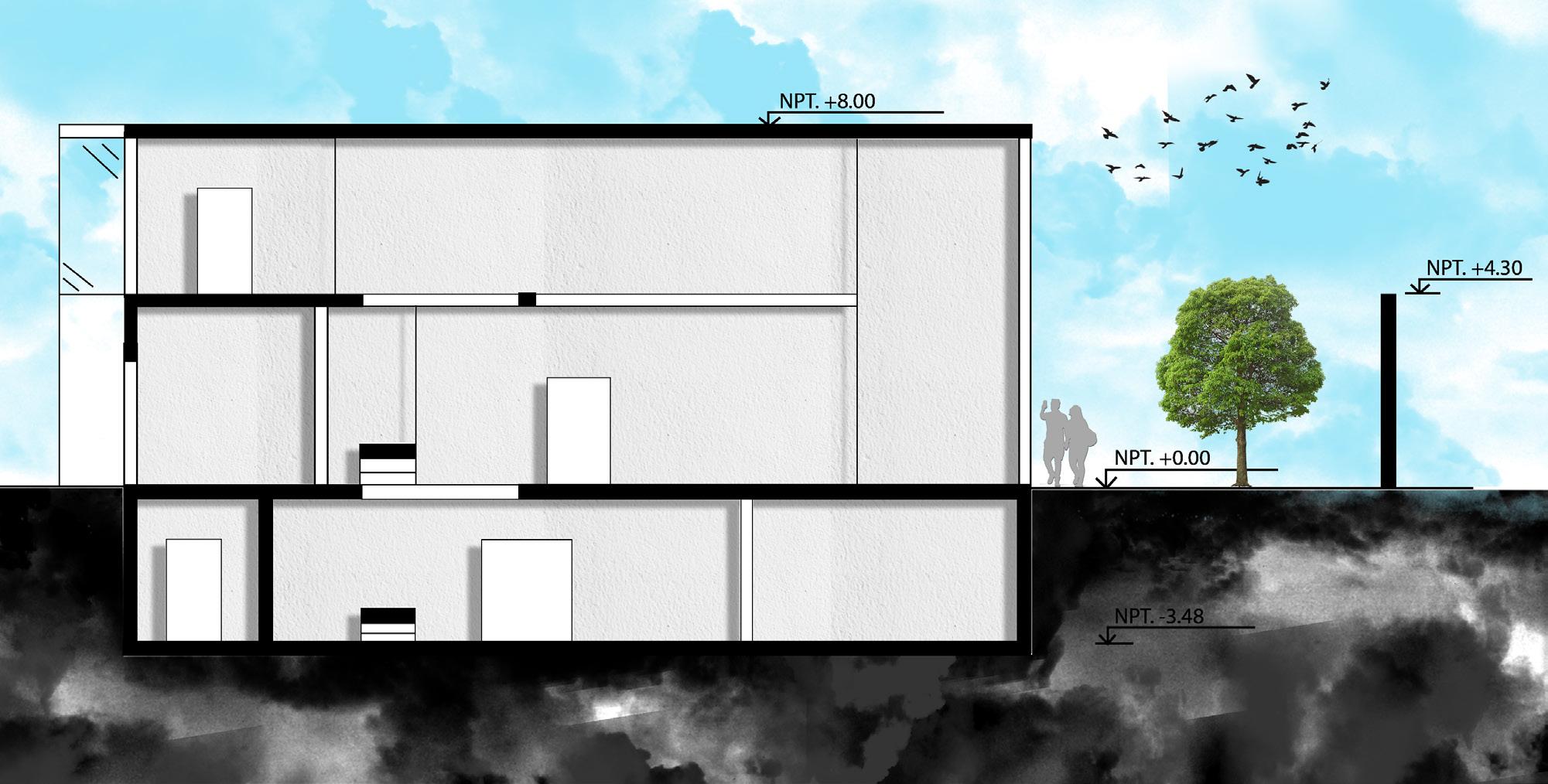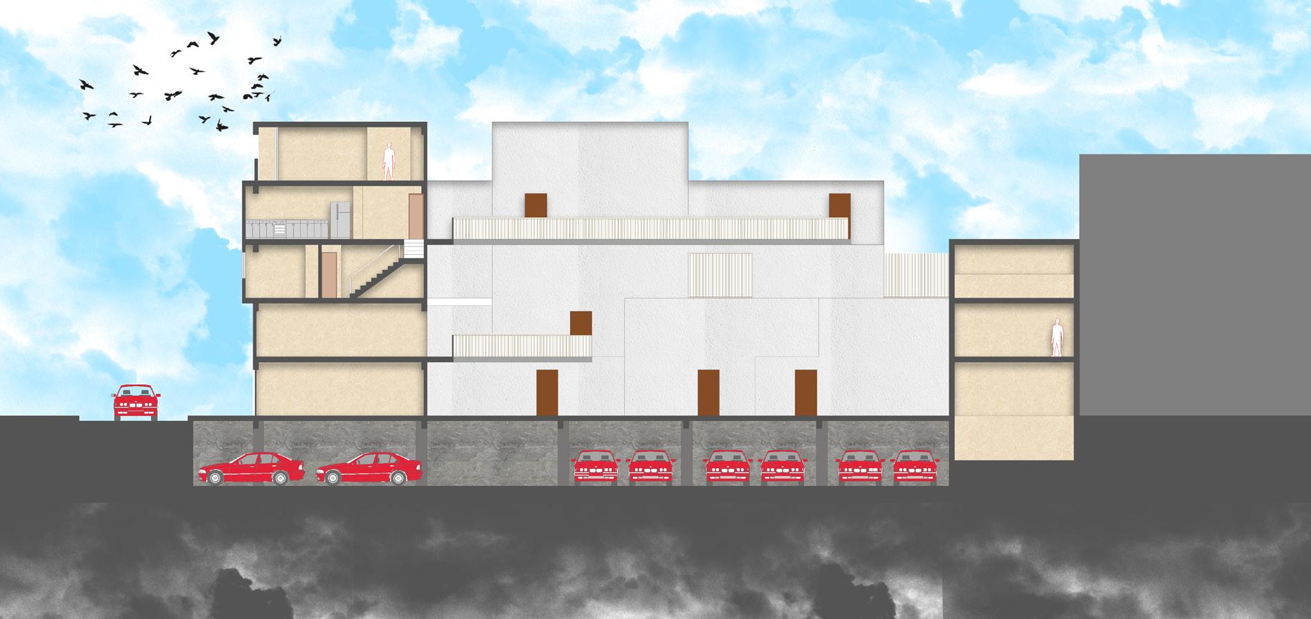 El trabajo final consistió en hacer un multifamiliar en el terreno más cercano al Museo de Antropología, con 2 departamentos y 2 loft; además de 40% como área libre.