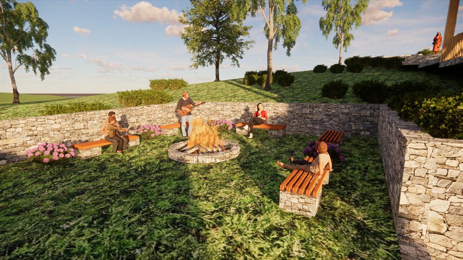 Zona de fogata privada Zona de esparcimiento Zona de preparado