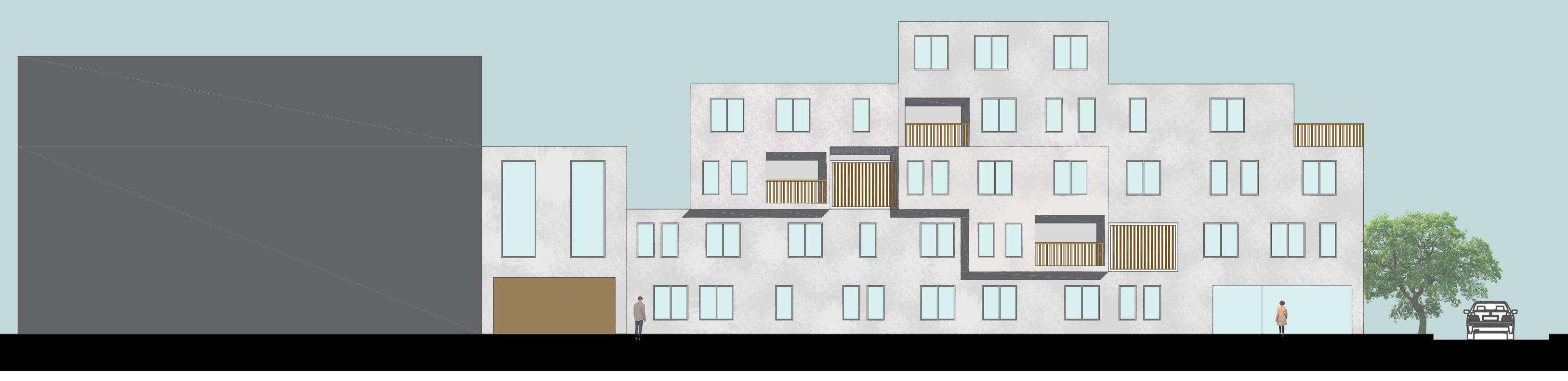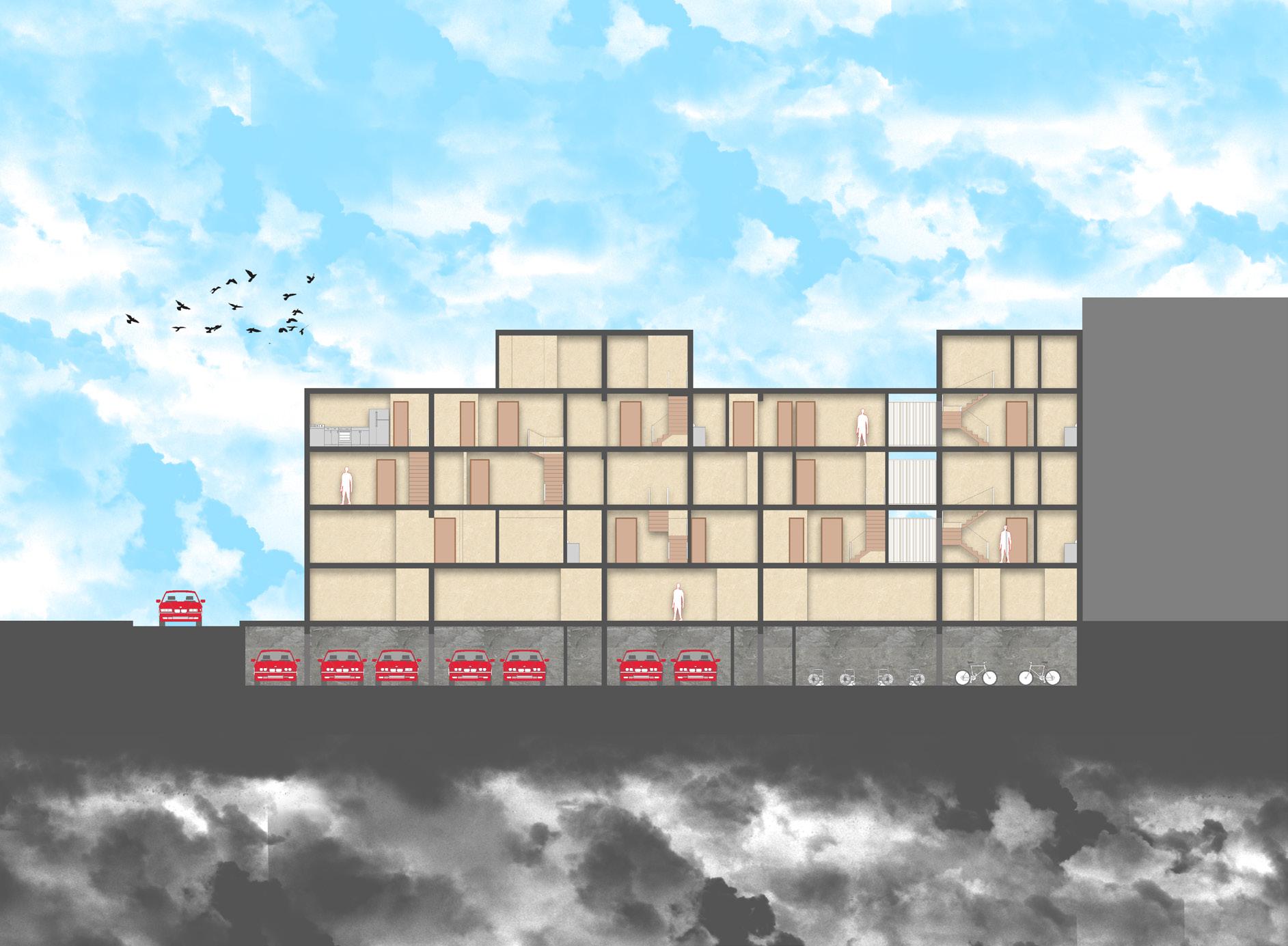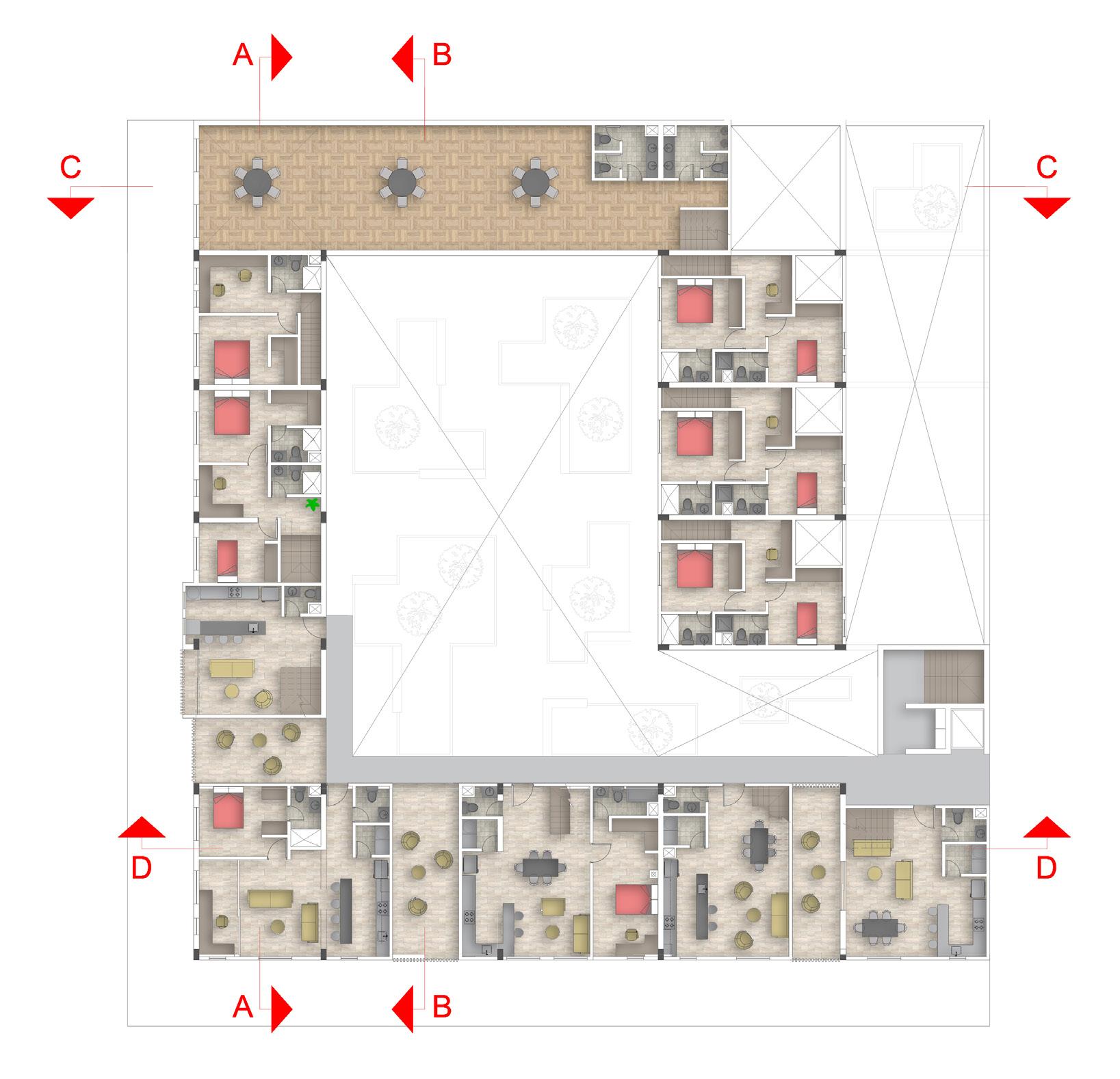 Se desarrolló un edificio híbrido, jugando con las variadas alturas de los edificios aledaños y generando espacios llamativos para el usuario.