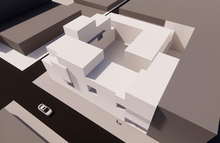 Siguiendo las criticas la volumetría siguio evolucionando y ahora de la mano con la distribución de ambientes, ya se debía tener un planteamiento esquemático de estos para poder adaptar la volumetría.