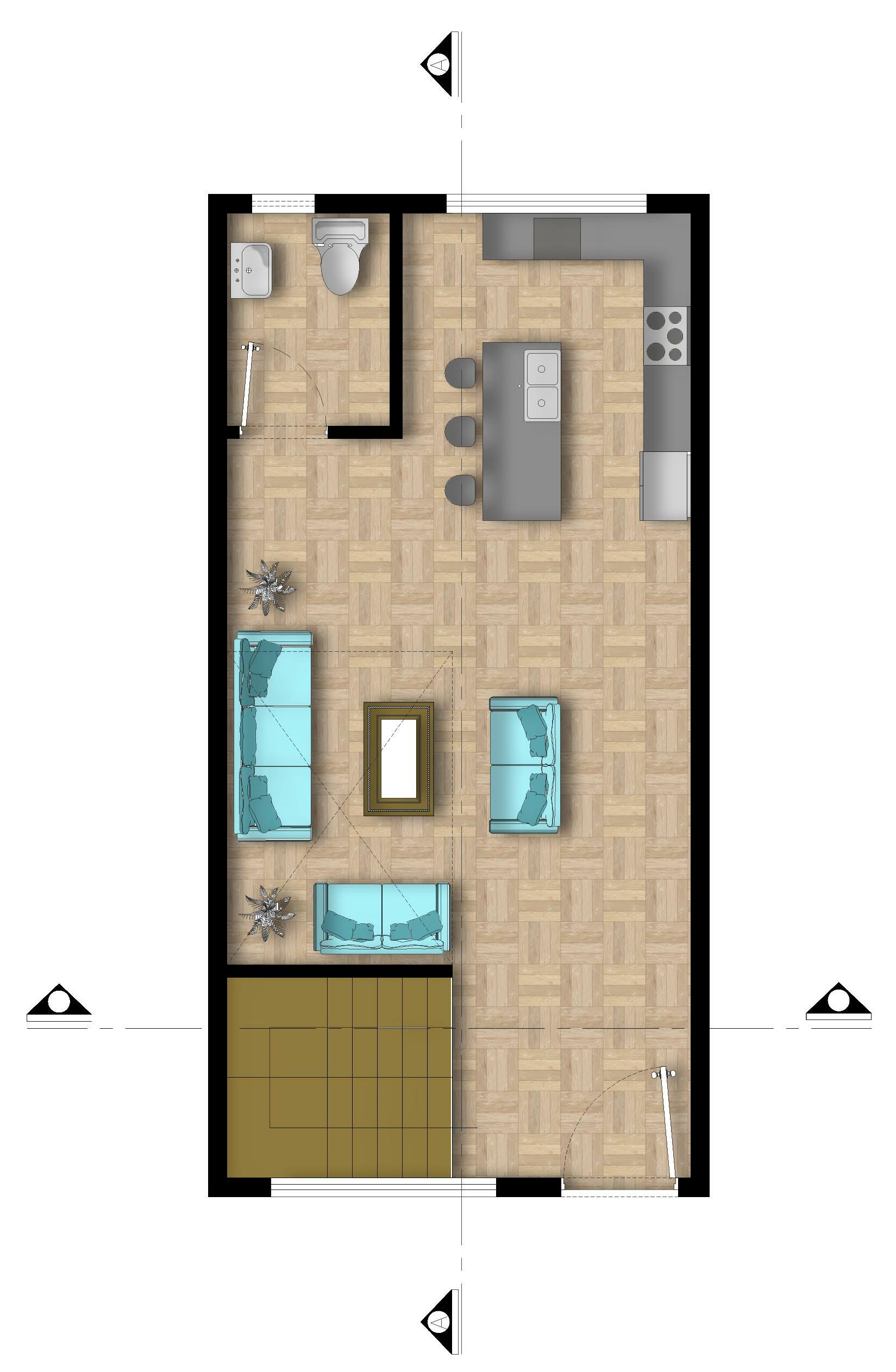 Con un planteamiento más claro de la distribución se empezó a pasar a limpio los esquemas, agregando sótanos para que sean usados por el usuario.