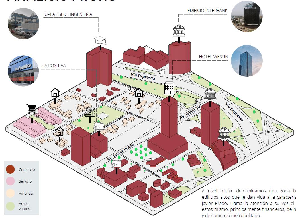 Durante la primera parte del ciclo se realizó un análisis a la zona donde será el proyecto, siendo este límite de San Isidro y Lince. Se marcaron las tipologías encontradas y los edificios más emblemáticos cerca del terreno.